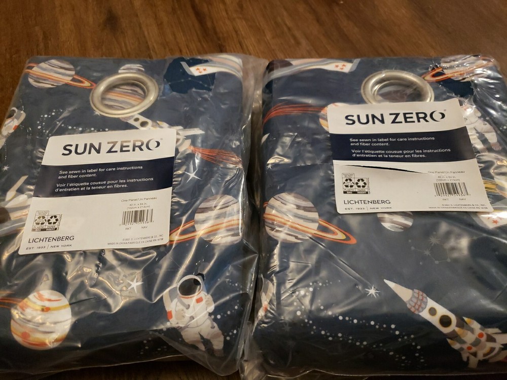 SUN ZERO LICHTENBERG 2 PANELS 40''X84'' Outer Space Planets Astronaut Spaceship Curtains...