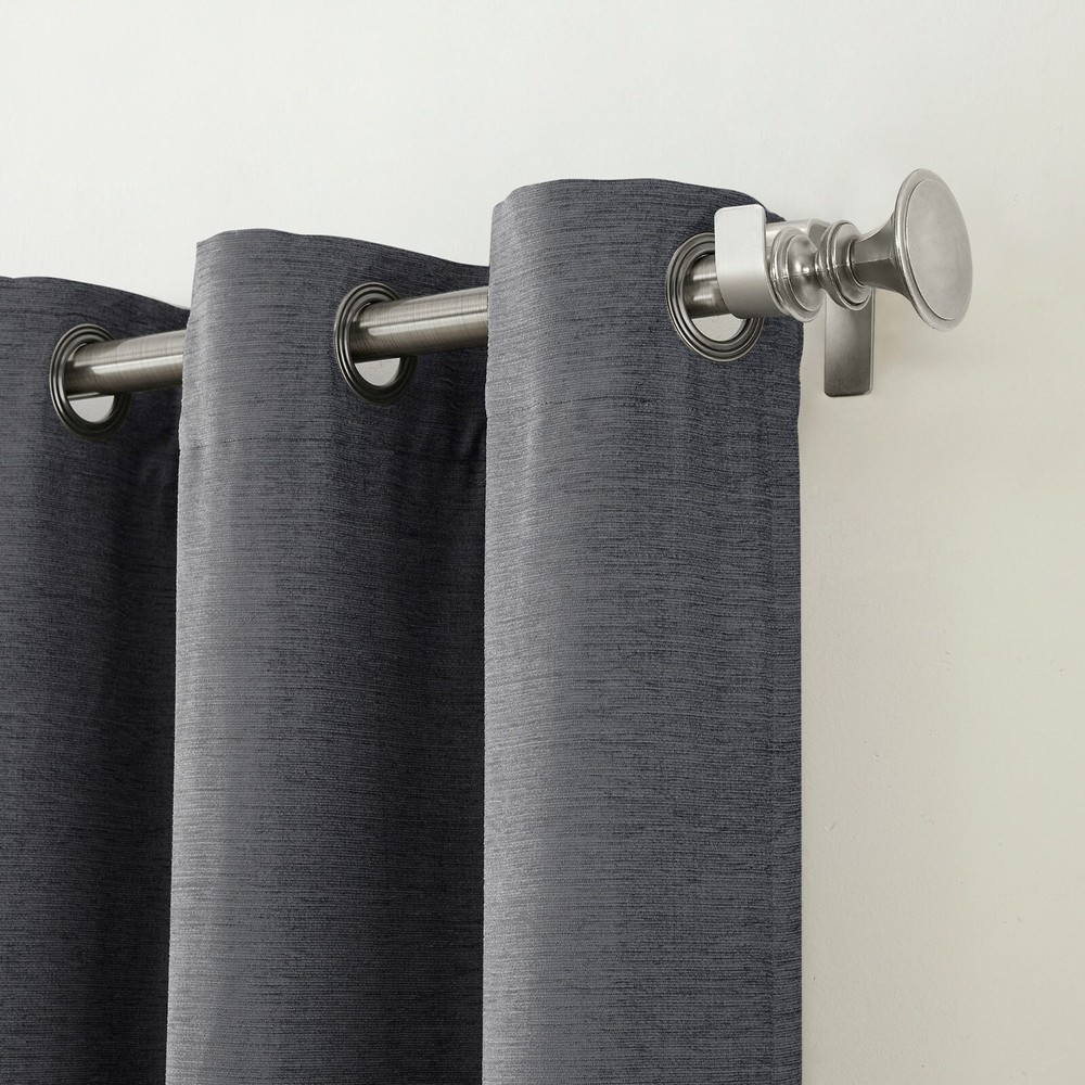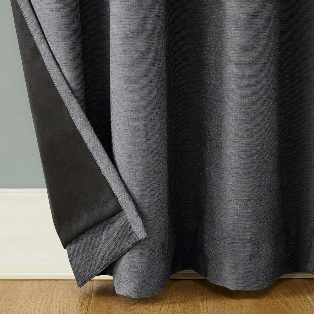Dark Grey/gray SMOKE chenille curtain panel with black-black out lining. New in open package. Does not match the set I was trying to match. Grommet top. Substantial beautiful fabric. 52" wide By 84" long single panel. No issues to note. From the manufacturer: Sun Zero Manor Curtain Panel in smokes provide the ultimate in light blocking technology to keep out even the harshest of light while bringing an elegant urban sophistication to any room of your home. Sun Zero Extreme Blackout technology is laboratory tested to block out 100% of light, reduce outside noise by up to 35%, and decrease energy lost through your windows by up to 50%. Comfort is optimized with thermal properties that help keep summer heat and winter chill out of your home. Hang in your entertainment room to eliminate screen glare and reduce distracting outside noise, or in your bedroom for enhanced privacy and a sounder, more uninterrupted sleep. Due to the heavy nature of this fabric, we recommend the use of sturdy curtain rods with brackets and/or wall anchors. Individual panel measuring 52" width by 84" length. Machine wash cold on gentle cycle. Use non-chlorine bleach when needed. Tumble dry on low heat, using a cool iron as needed. Extreme Blackout technology blocks out 100% of outside light Energy Efficient design reduces energy lost through your windows by up to 50% Thermal properties help keep summer heat and winter chill out of your home Noise reduction by up to 35% helps you get a sounder, more uninterrupted sleep Combined shipping is offered when you purchase or win multiple items. PLEASE REQUEST A COMBINED Invoice BEFORE you pay. If you are using a small browser (cell phone, notebook) There may be NO OPTION to request a total for a COMBINED invoice. You may want to use a PC or LAPTOP in general for your EBAY buying. Otherwise you miss out on all sorts of details and options. If you need a combined invoice and do not have the option? I refund the shipping overage. Buying from sellers using eBay International Shipping If your seller is shipping your item through eBay International Shipping, the eBay International Shipping logo will be displayed in the listing and at checkout. You'll pay for delivery charges at checkout and you'll pay for any customs charges, import fees and taxes either at checkout or when your item arrives. When you buy an item from a seller using eBay International Shipping, you can benefit from lower international shipping costs negotiated by eBay. Keep in mind that you currently won't be able to combine shipping if you purchase multiple items from sellers in this program. Once you've completed checkout, the seller will send your item to our shipping hub, and from there it's shipped to you. Tracking is automatically added so you can track your item from the hub to your door.