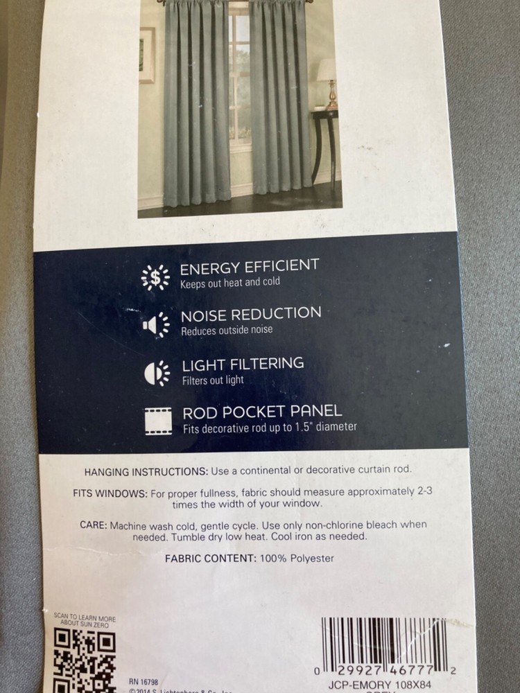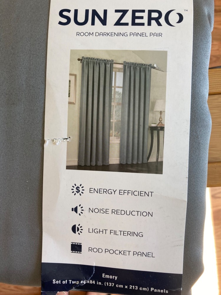 NEW SUN ZERO GRAY EMORY 2PANELS 54” X 84 ROOM DARKENING NO RETURNS S&H $5.99