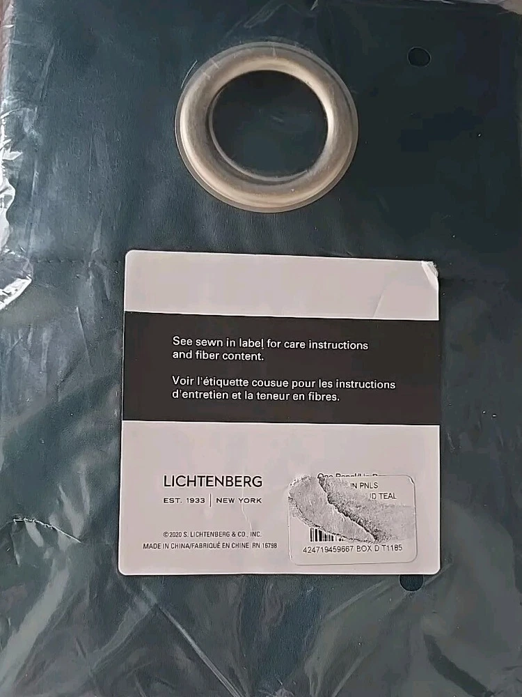 This Sale is For One (1) SUN ZERO Curtain Panel Solid Teal in Color S. Lichtenberg & Co., Inc. 100% Blackout Panel Energy Efficient ~ reduces energy lost through windows Noise reduction Grommet top design allows for easy hanging on a standard curtain rod up to 1.5" diameter Perfect for the bedroom or living room Measures approximately 54" wide x 63" long 100% Polyester Machine washable The curtain panel is new ~ never used Please view photos for a good description of this item Thank you!