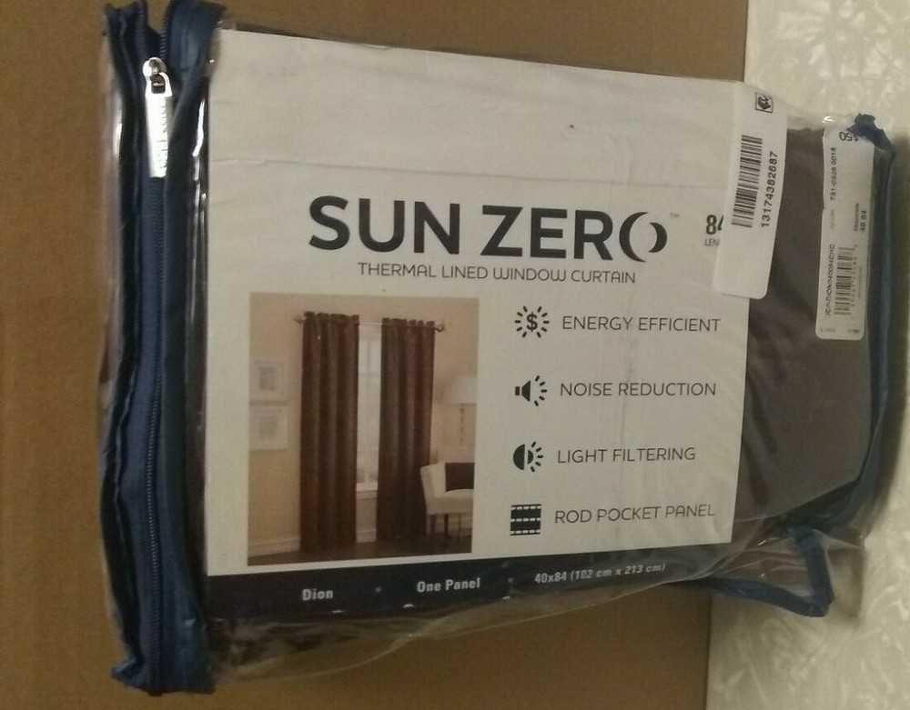 SUN ZERO THERMAL LINED CURTIAN ONE ROD POCKET PANEL DION 40"X84" CHOCOLATE MSRP $50 D11 OUR MERCHANDISE IS STORE RETURNS PLEASE EXPECT BROKEN SEALS AND DAMAGED PACKAGES DEFECTIVE NEW MERCHANDISE WILL BE REPLACED OR REFUNDED. PLEASE BE SURE YOU WANT THE ITEM BEFORE YOU BUY RETURNS ARE NOT ACCEPTED