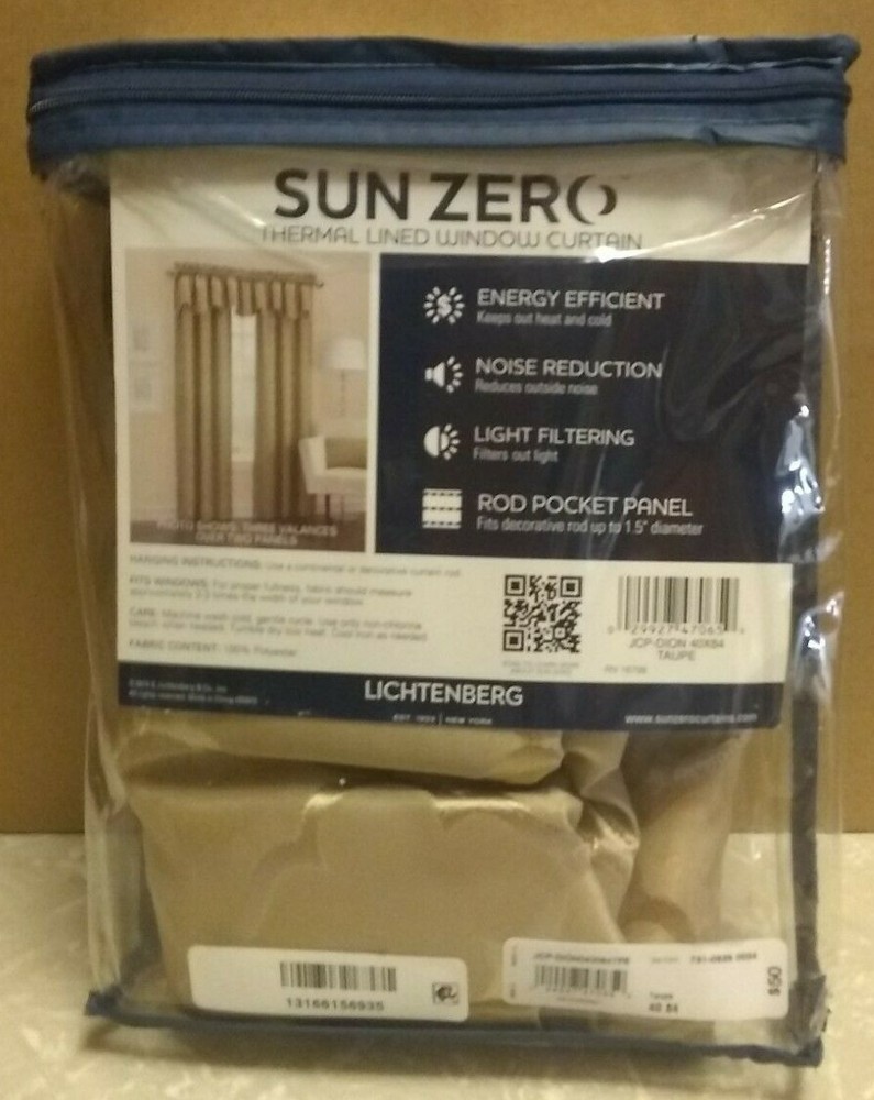 SUN ZERO THERMAL LINED CURTIAN ONE ROD POCKET PANEL DION 40"X84" TAUPE MSRP $50 D11 OUR MERCHANDISE IS STORE RETURNS PLEASE EXPECT BROKEN SEALS AND DAMAGED PACKAGES DEFECTIVE NEW MERCHANDISE WILL BE REPLACED OR REFUNDED. PLEASE BE SURE YOU WANT THE ITEM BEFORE YOU BUY RETURNS ARE NOT ACCEPTED