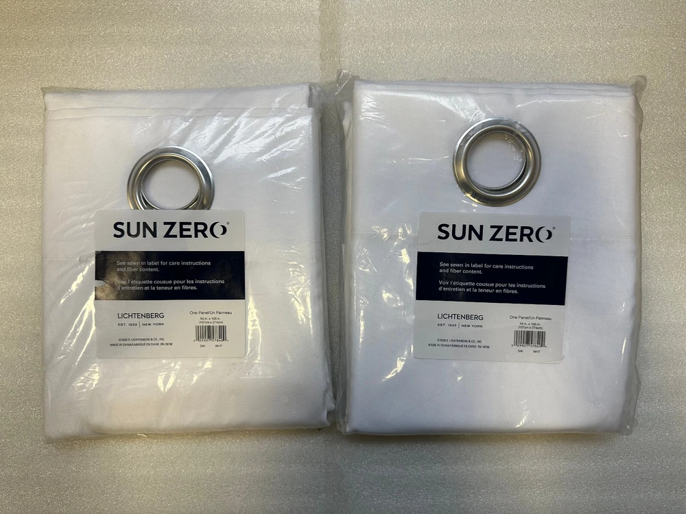NEW SUN ZERO(2 PACK) SAILOR INDOOR/OUTDOOR UV PROTECTANT GROMMET CURTAIN PANEL, WHITE 54"W X 108"L PRODUCT DESCRIPTION: SUN ZERO FADE RESISTANT DURABLE INDOOR/OUTDOOR FABRIC OFFERS LIGHT BLOCKING WITH UPF 50+ UV PROTECTION STAIN AND WATER RESISTANT LIGHTWEIGHT MATERIAL IDEAL FOR OUTDOOR PERGOLAS AND GAZEBOS RUST-PROOF GROMMETS FIT CURTAIN RODS UP TO 1.5" IN DIAMETER ROOM DARKENING SIZE - 54"W X 108"L EACH PANEL 2 CURTAIN PANELS COLOR - WHITE THANK YOU FOR LOOKING AND CHECK OUT MY OTHER LISTINGS. ~~~bidify~~~