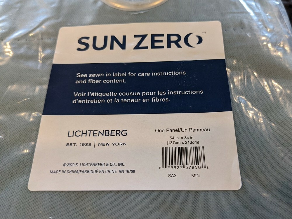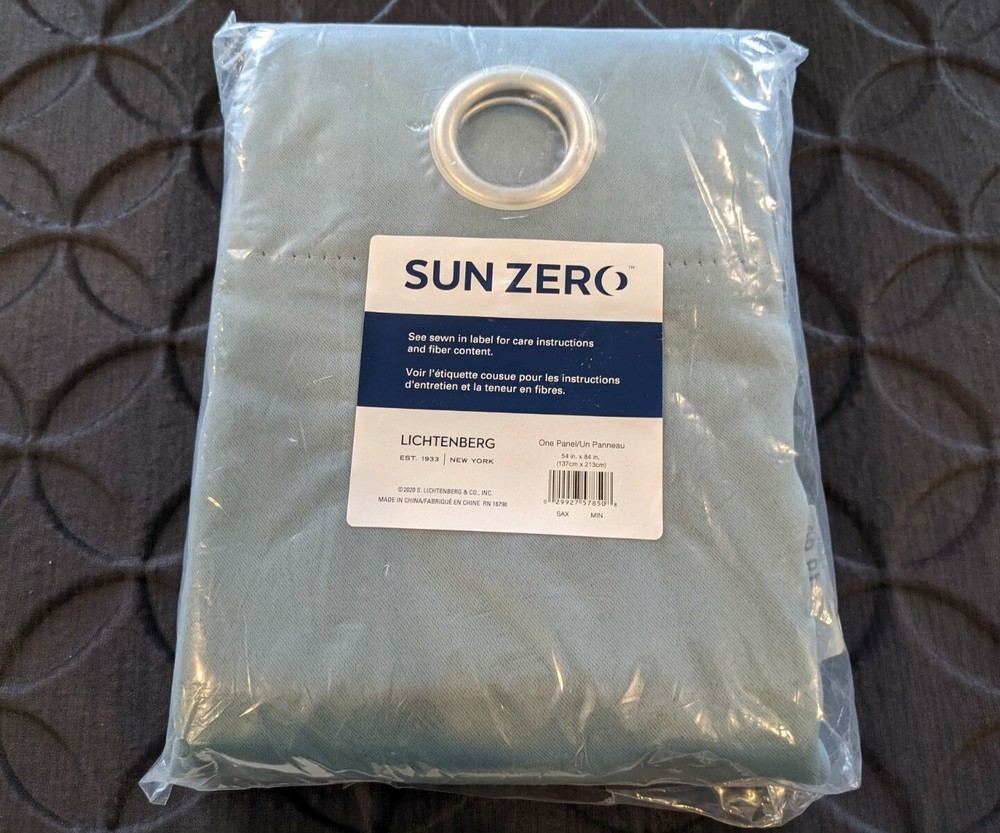 SUN Zero Lichtenberg Grommet Curtain Panel in Mineral Blue. 54x84 Inch. New in Package. Please refer to photos. Photos are of actual item 525