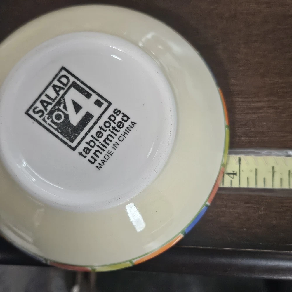 Salad For 4, Vintage Ceramic Large Salad Bowl Vinegar & Oil Decanters and 4 Mini Dip Bowls. No Cracks or Chips and is in Excellent Pre-owned Condition....