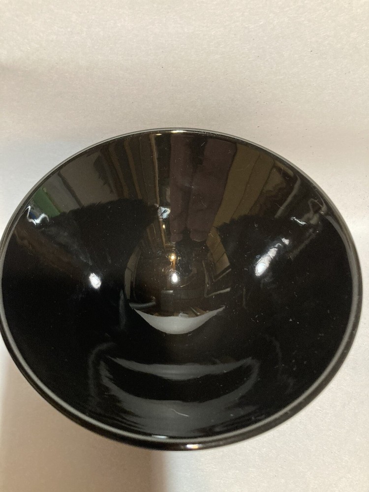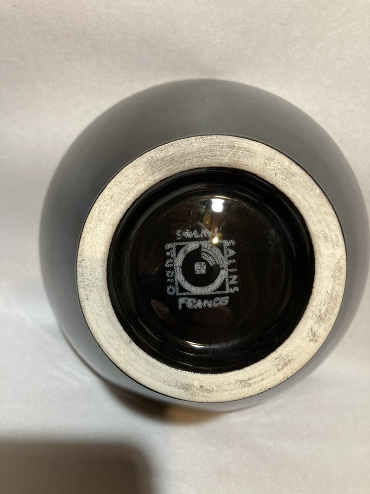 This listing is for one round black ceramic bowl made in France by Salins Studio. Measures 3"H x 5-3/4"W Light scratches from use