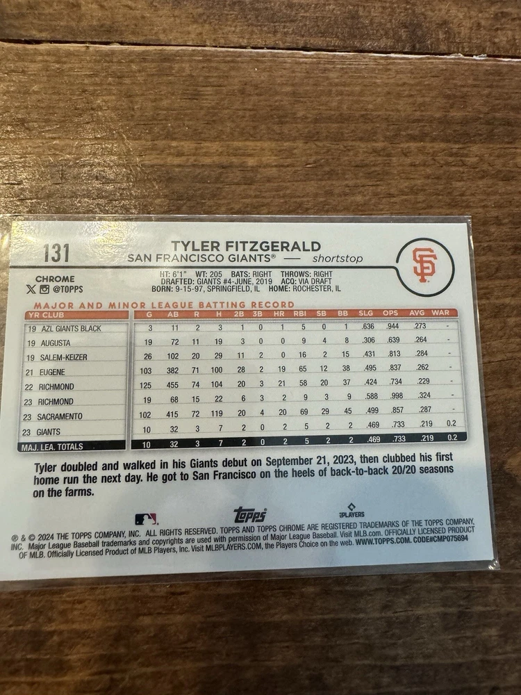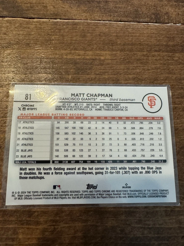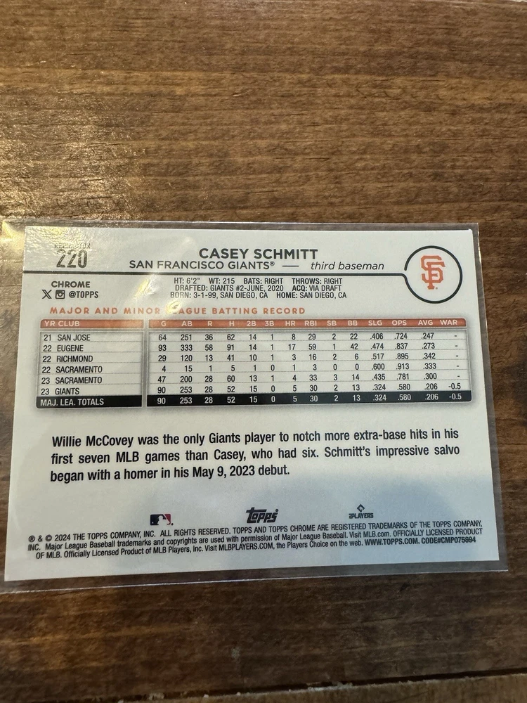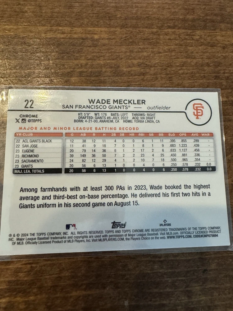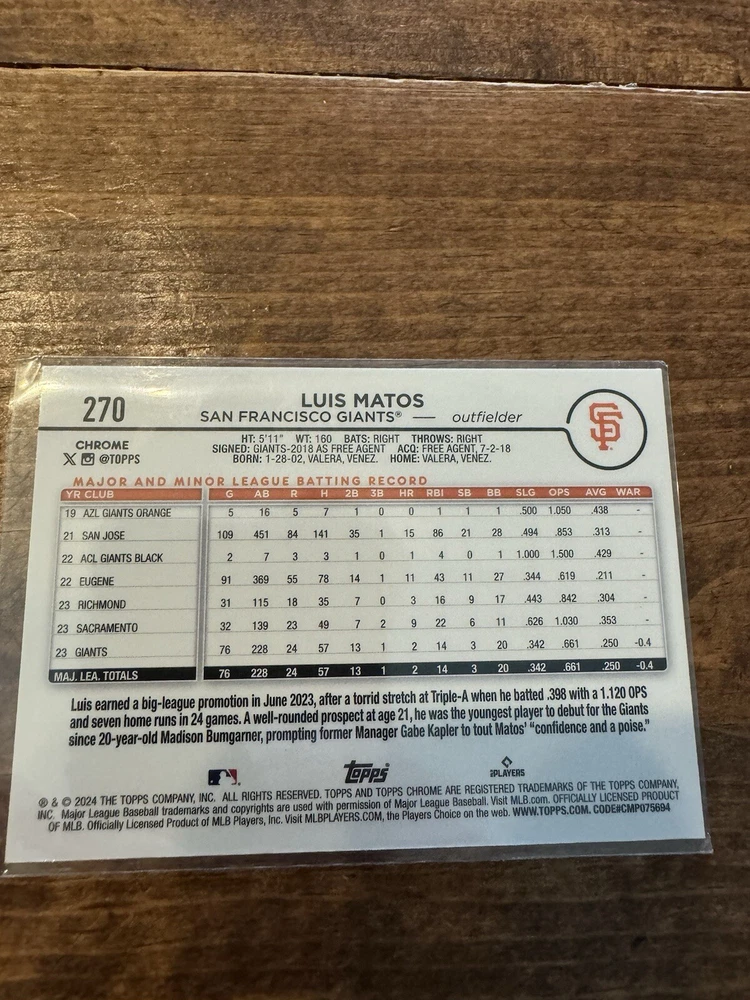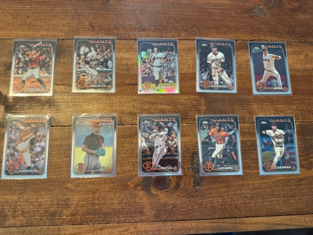This is a great collection of San Francisco Giants baseball cards featuring players such as Marco Luciano, Mike Yastrzemski, Luis Matos, Kyle Harrison, Casey Schmitt, Wade Meckler, Tyler Fitzgerald, Robbie Ray, Matt Chapman and Logan Webb. These sports trading cards are perfect for any fan of the team and are a great addition to any collection. The cards are not autographed and have not been graded. Get your hands on these unique cards and add them to your sports memorabilia collection today!