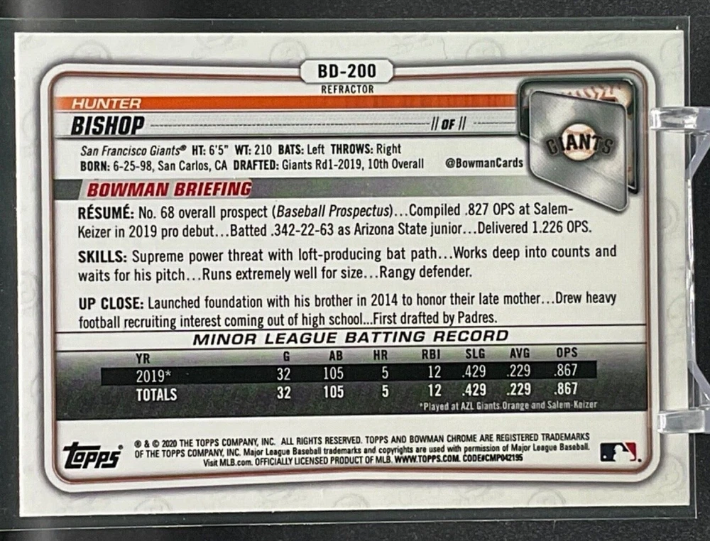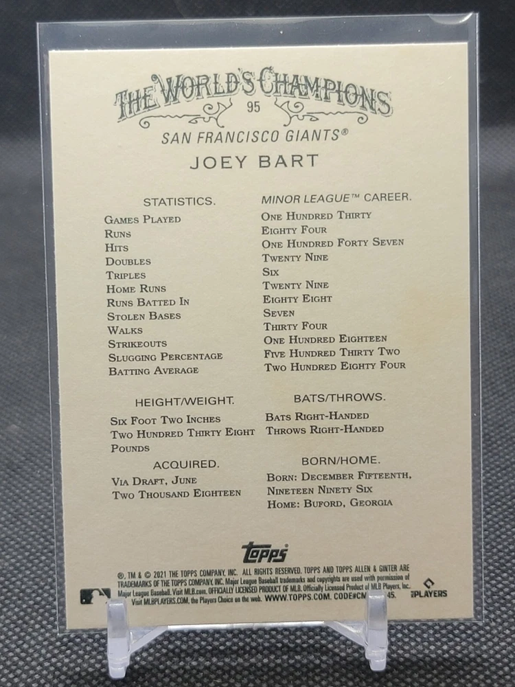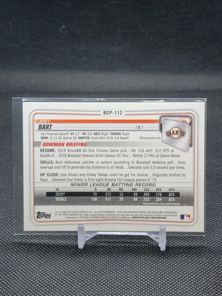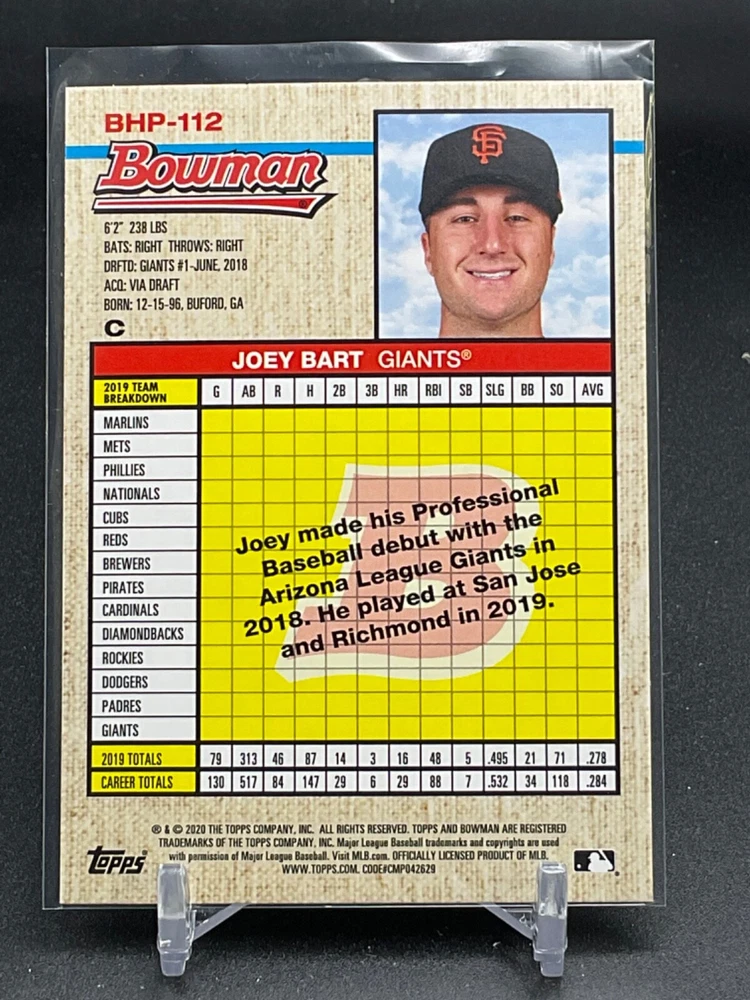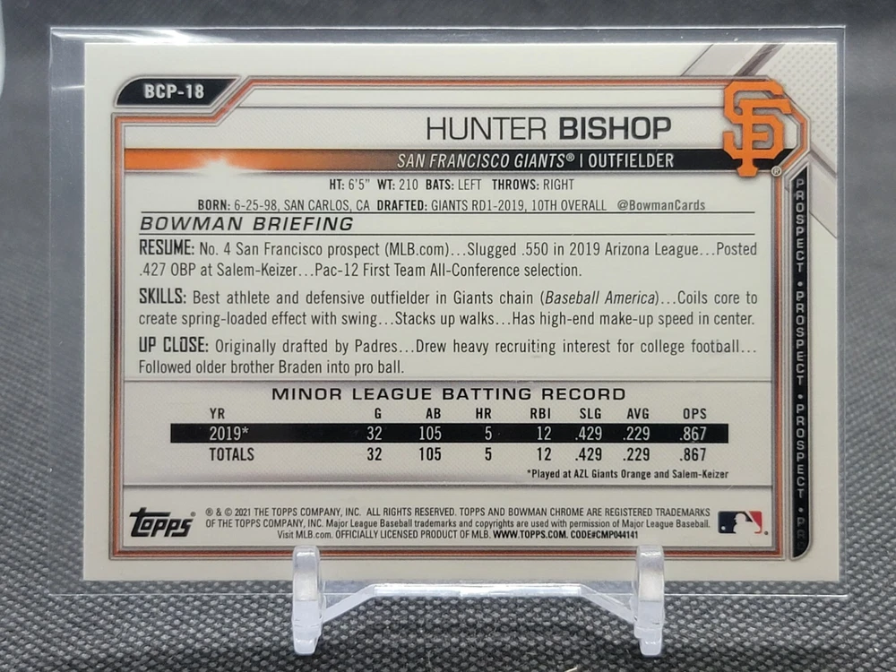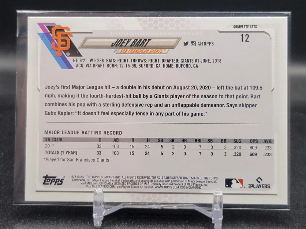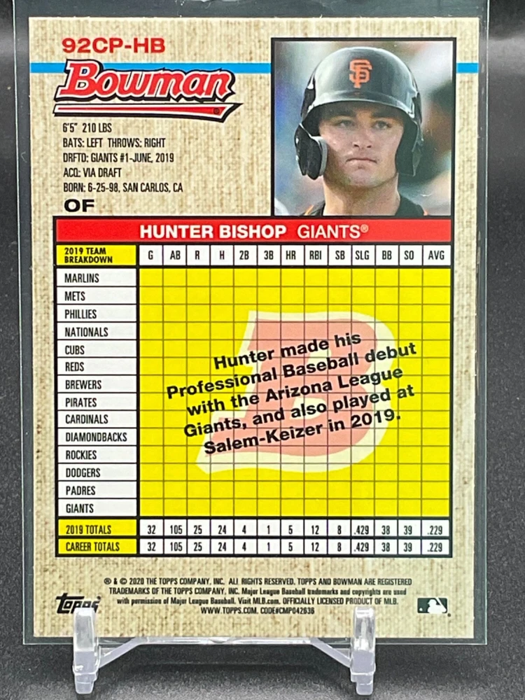 Immerse yourself in the world of San Francisco Giants baseball with our exclusive selection of sports trading cards. Featuring notable players like Barry Bonds, Willie Mays, and Buster Posey, these cards are a must-have for fans and collectors alike. Whether you're looking to complete your collection or find that one special card, our range offers a variety of inserts and rookies to choose from. Updated on December 10th, our inventory includes rising stars like Marco Luciano and Hunter Bishop, as well as established players like Mike Yastrzemski and Willie McCovey. With a focus on Major League Baseball, each card captures the spirit and energy of the game, making it the perfect addition to any collection or the ideal gift for the baseball enthusiast in your life.