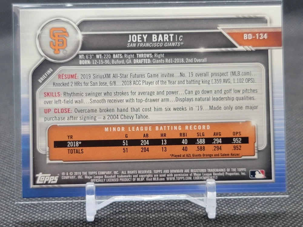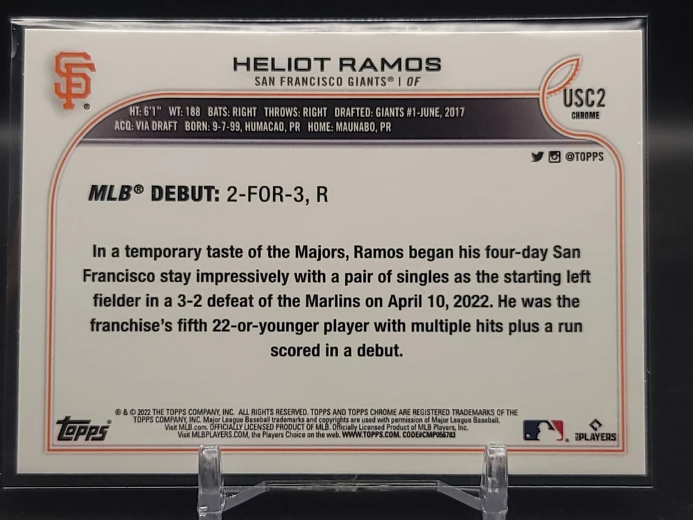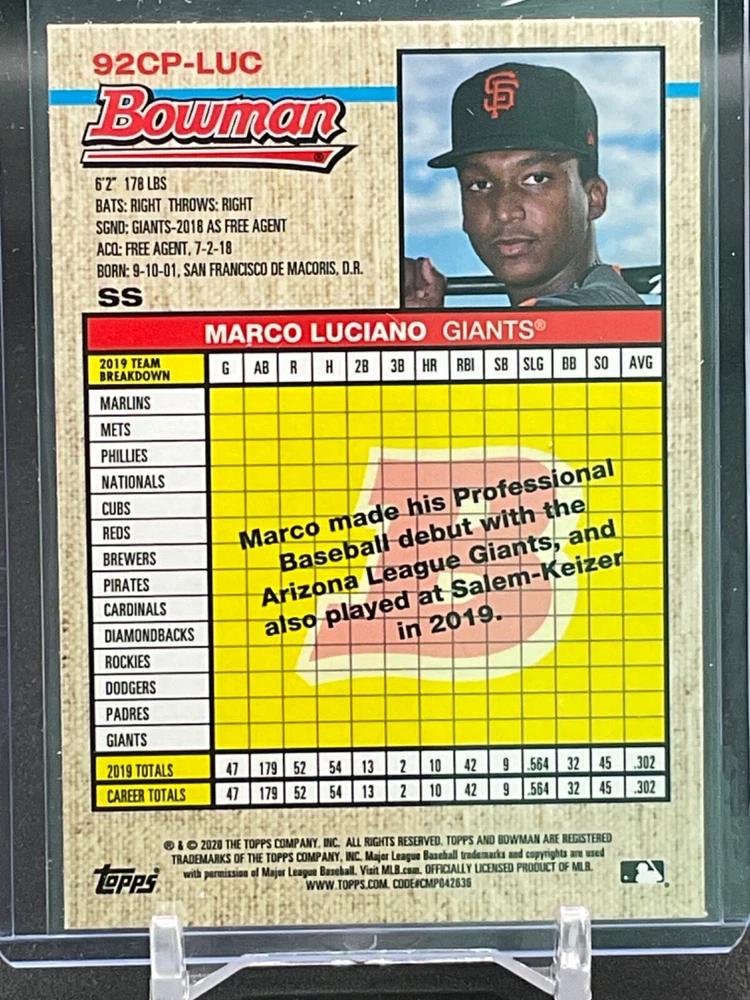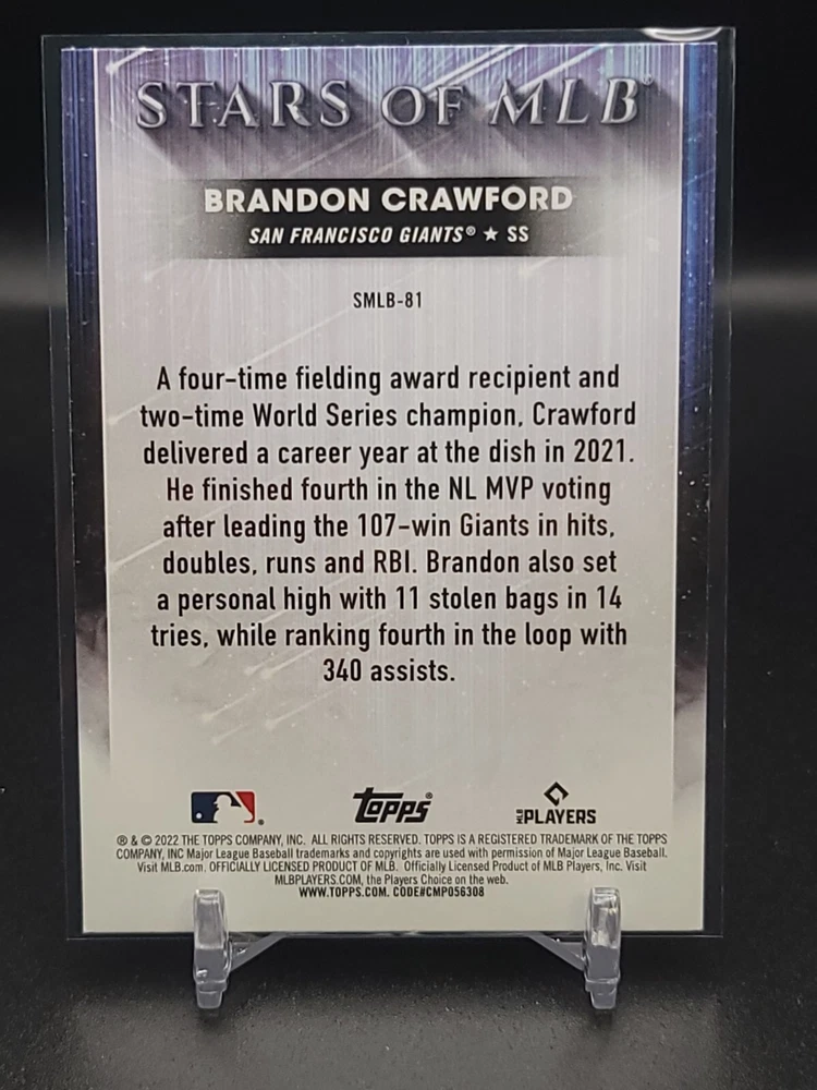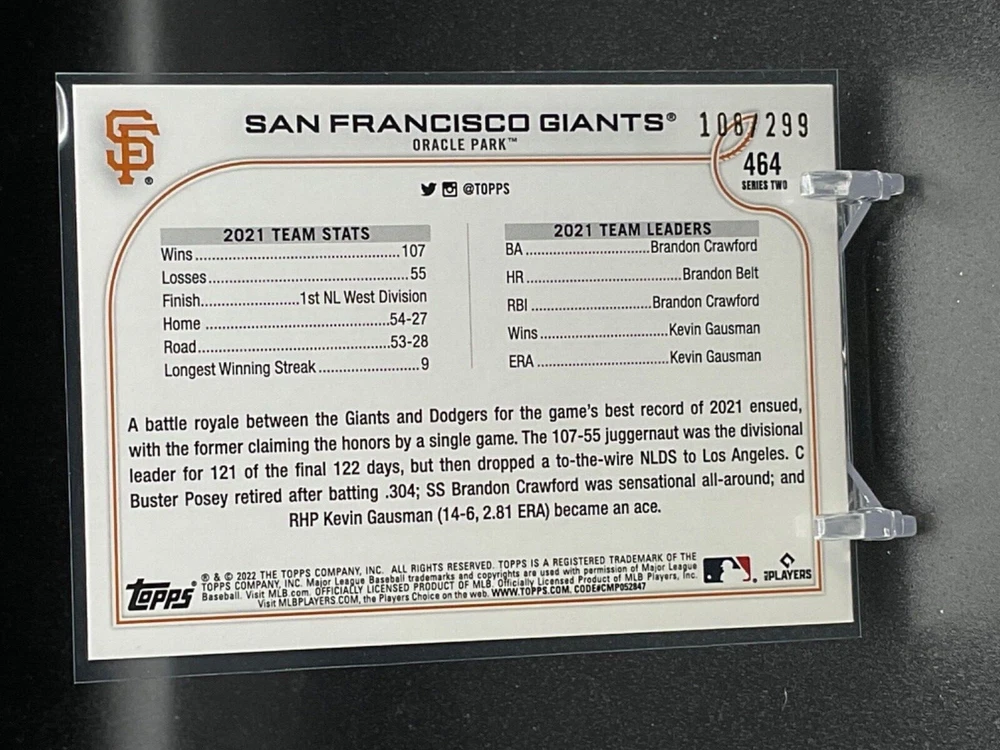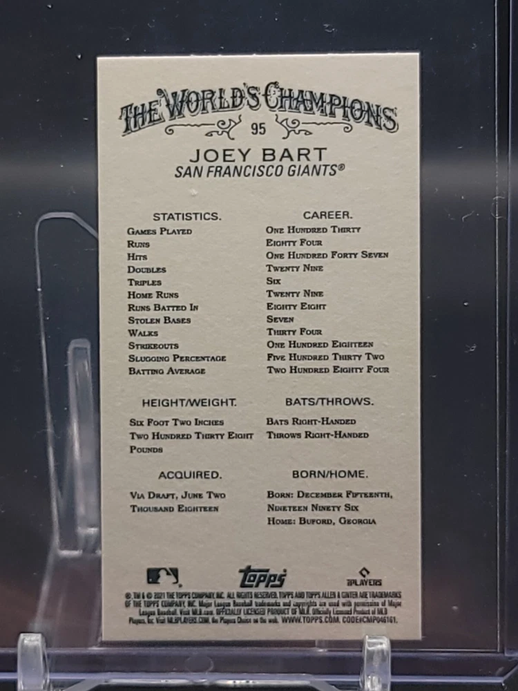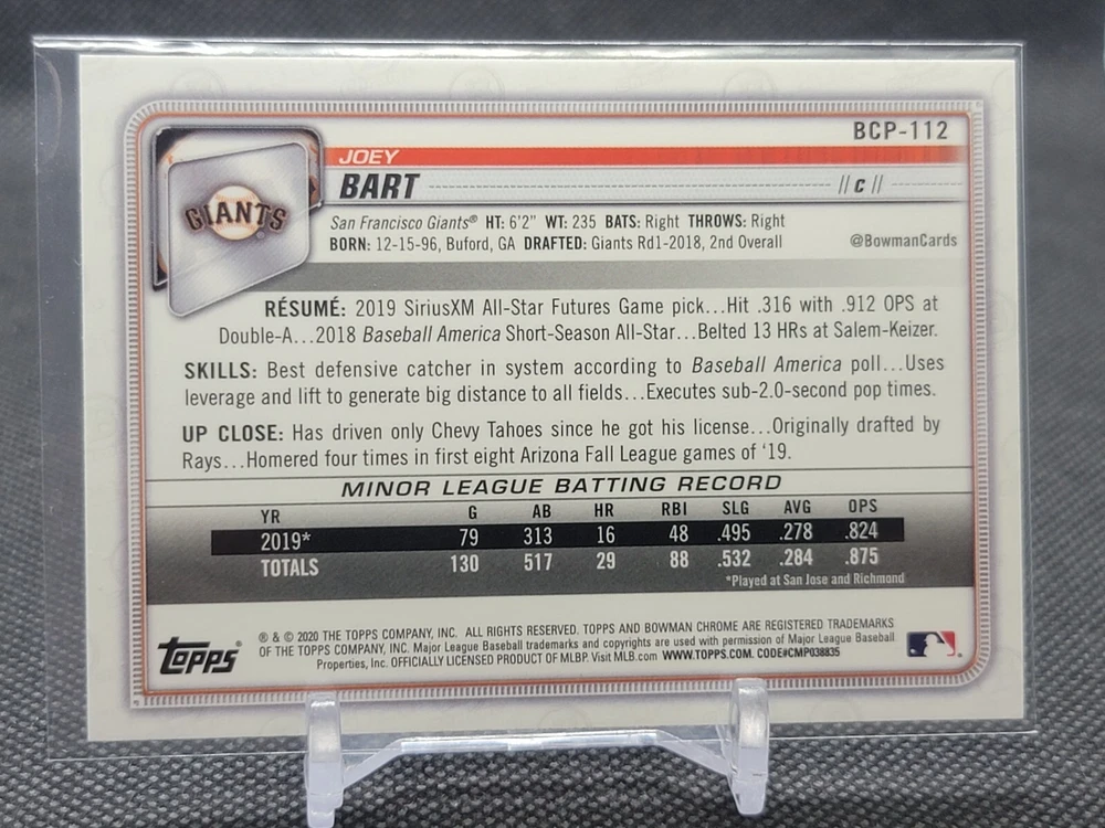 Immerse yourself in the world of San Francisco Giants baseball with our exclusive selection of sports trading cards. Featuring notable players like Barry Bonds, Willie Mays, and Buster Posey, these cards are a must-have for fans and collectors alike. Whether you're looking to complete your collection or find that one special card, our range offers a variety of inserts and rookies to choose from. Updated on December 10th, our inventory includes rising stars like Marco Luciano and Hunter Bishop, as well as established players like Mike Yastrzemski and Willie McCovey. With a focus on Major League Baseball, each card captures the spirit and energy of the game, making it the perfect addition to any collection or the ideal gift for the baseball enthusiast in your life.