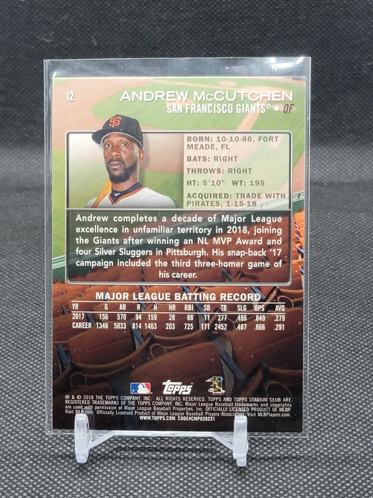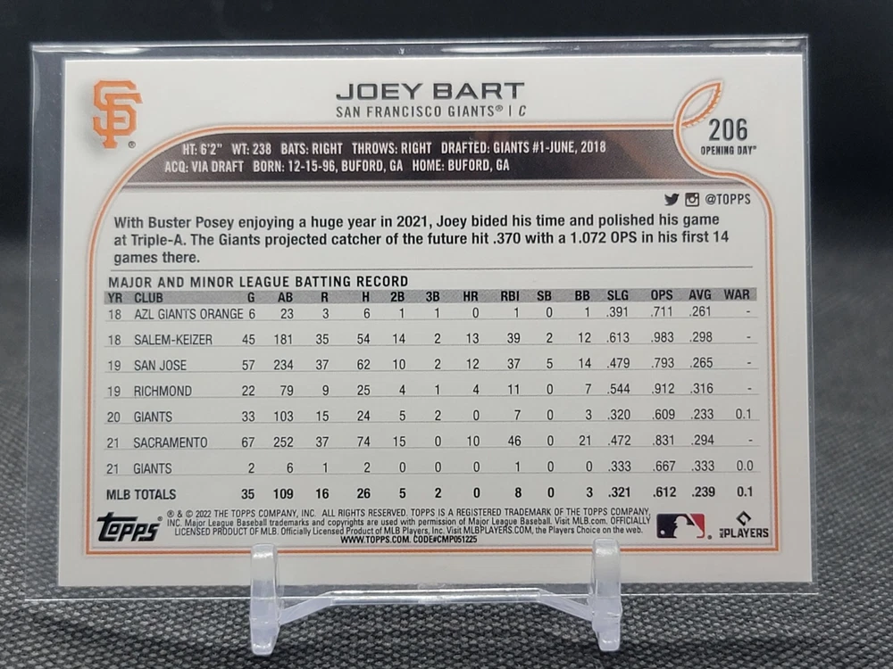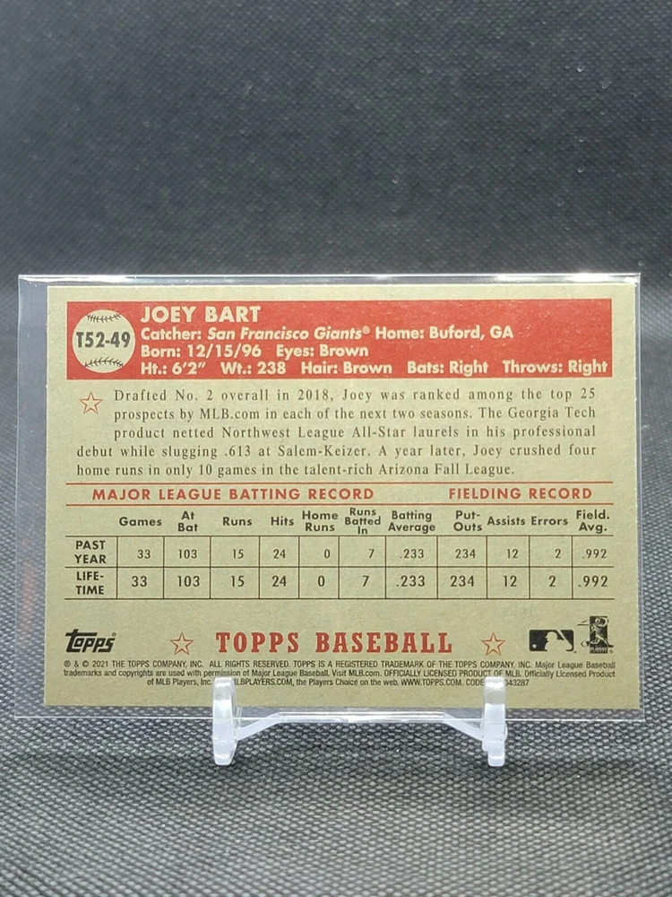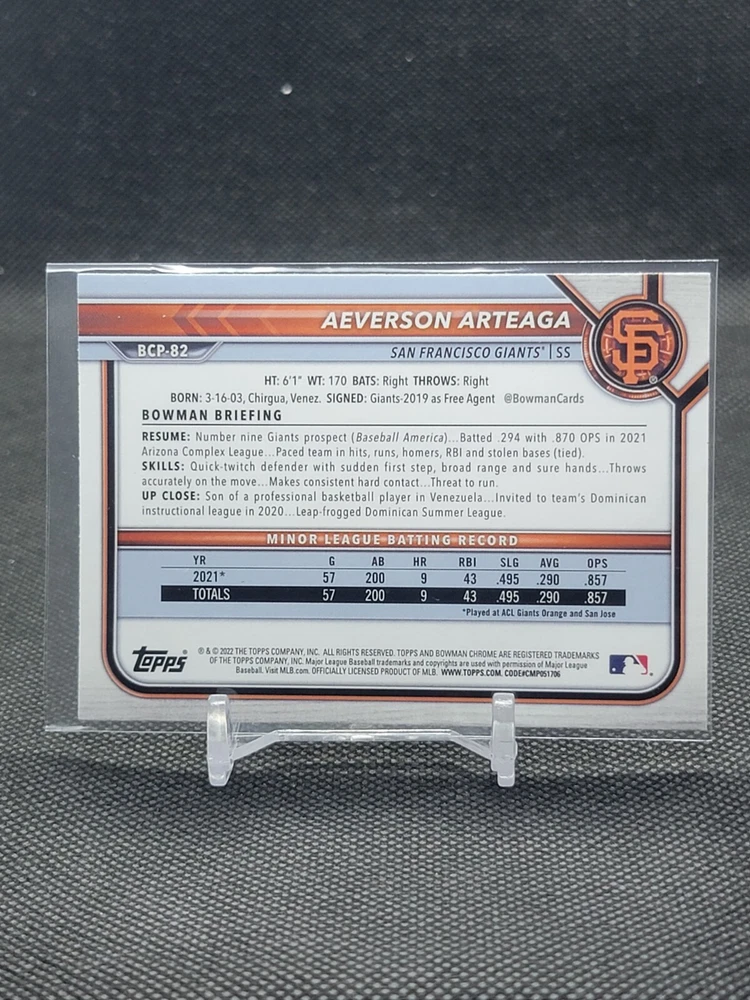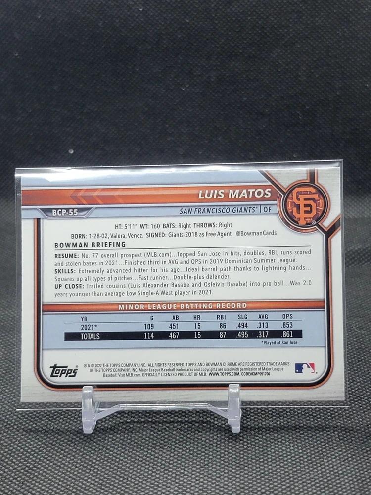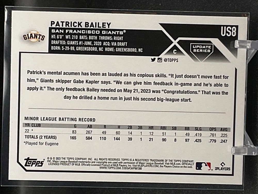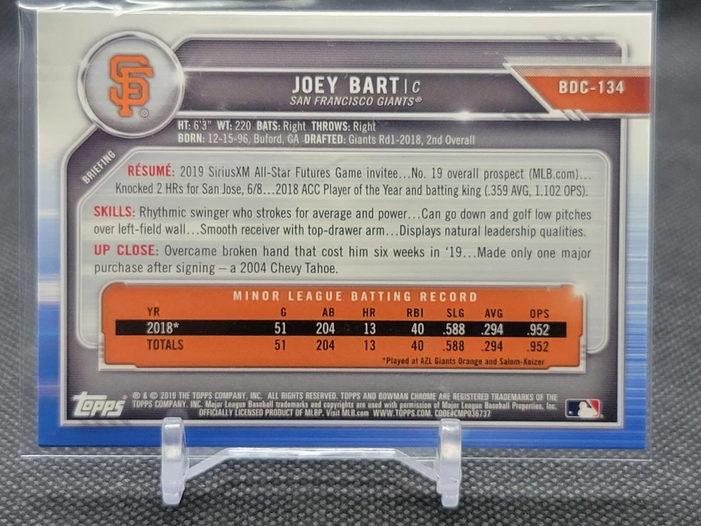 Immerse yourself in the world of San Francisco Giants baseball with our exclusive selection of sports trading cards. Featuring notable players like Barry Bonds, Willie Mays, and Buster Posey, these cards are a must-have for fans and collectors alike. Whether you're looking to complete your collection or find that one special card, our range offers a variety of inserts and rookies to choose from. Updated on December 10th, our inventory includes rising stars like Marco Luciano and Hunter Bishop, as well as established players like Mike Yastrzemski and Willie McCovey. With a focus on Major League Baseball, each card captures the spirit and energy of the game, making it the perfect addition to any collection or the ideal gift for the baseball enthusiast in your life.