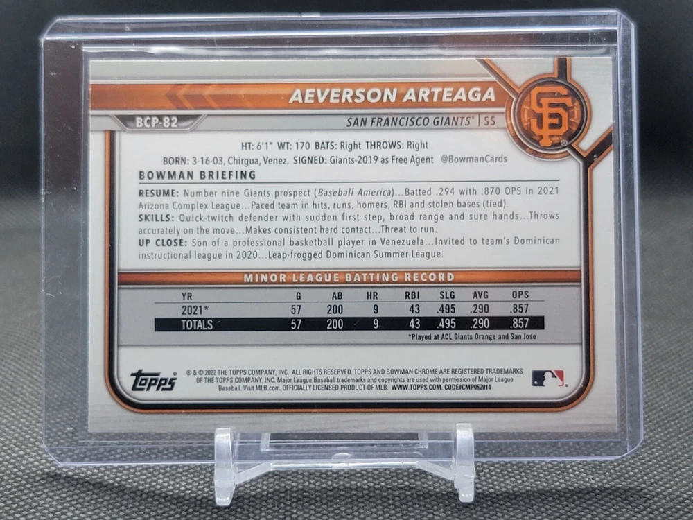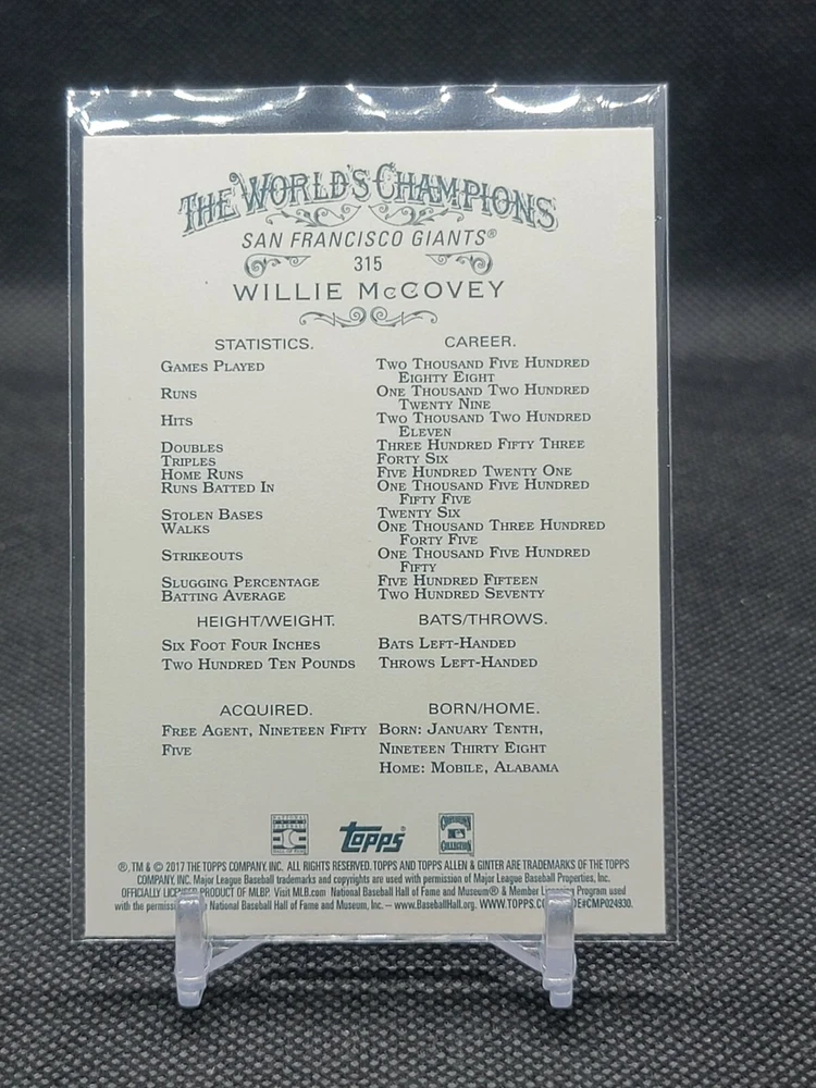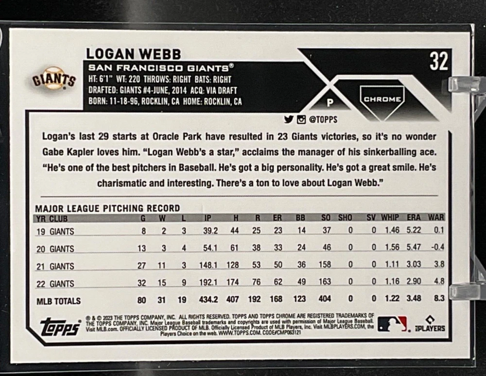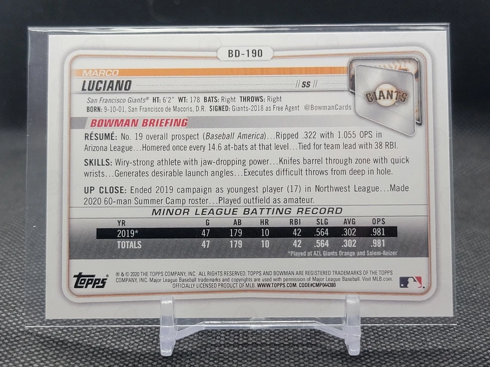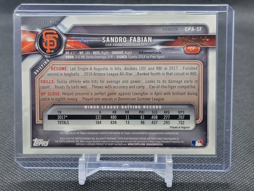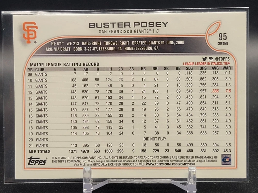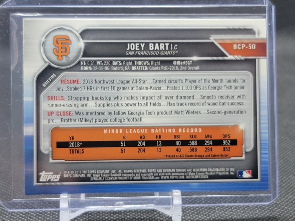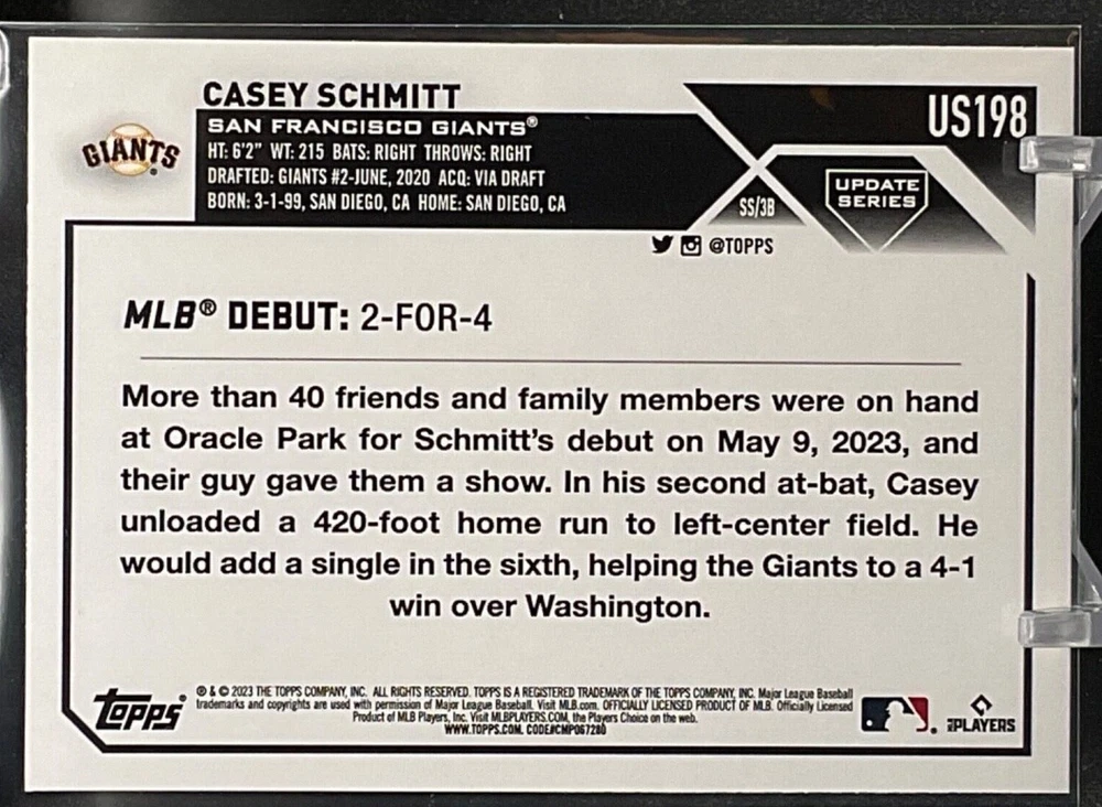 Immerse yourself in the world of San Francisco Giants baseball with our exclusive selection of sports trading cards. Featuring notable players like Barry Bonds, Willie Mays, and Buster Posey, these cards are a must-have for fans and collectors alike. Whether you're looking to complete your collection or find that one special card, our range offers a variety of inserts and rookies to choose from. Updated on December 10th, our inventory includes rising stars like Marco Luciano and Hunter Bishop, as well as established players like Mike Yastrzemski and Willie McCovey. With a focus on Major League Baseball, each card captures the spirit and energy of the game, making it the perfect addition to any collection or the ideal gift for the baseball enthusiast in your life.