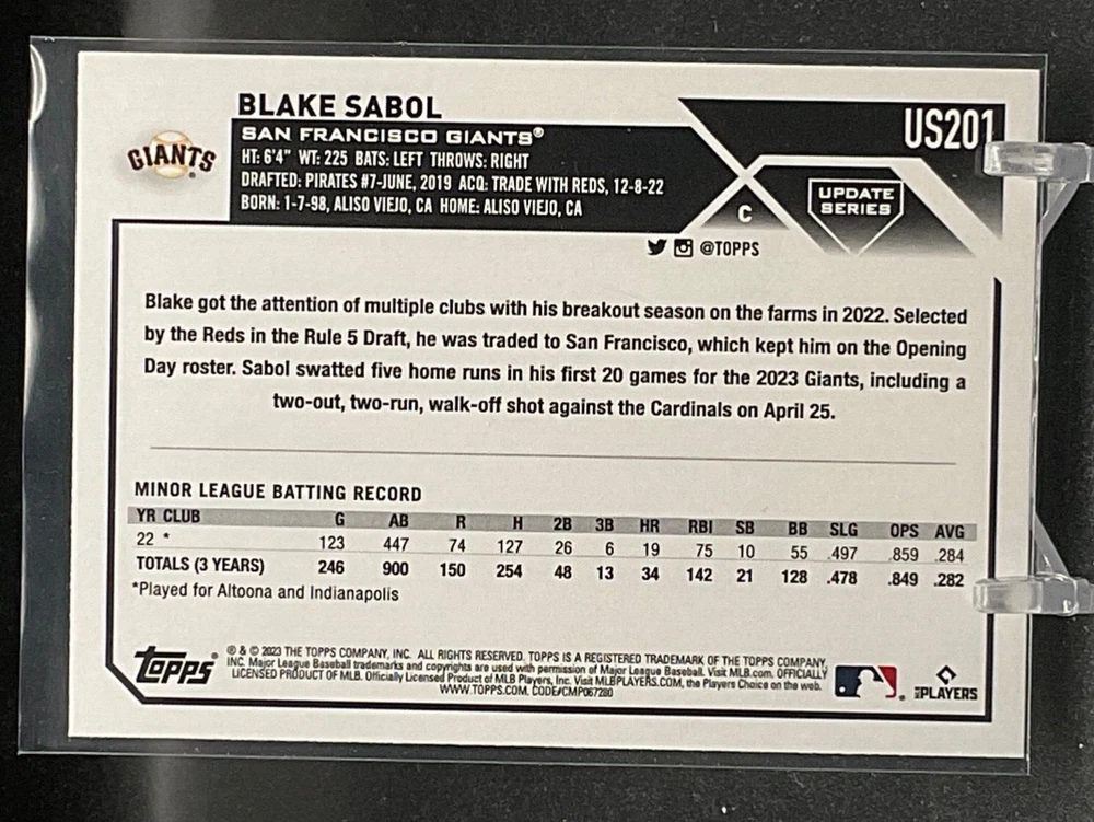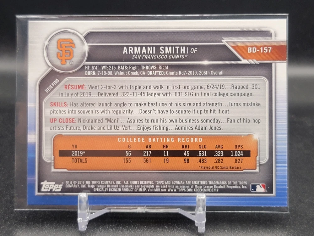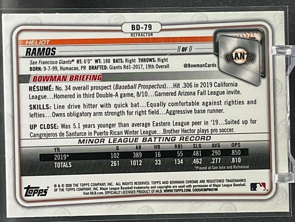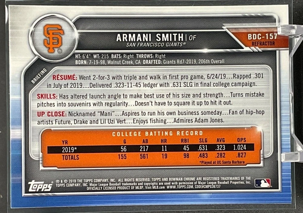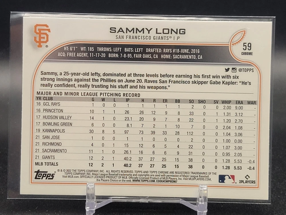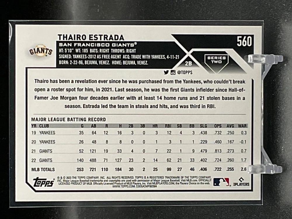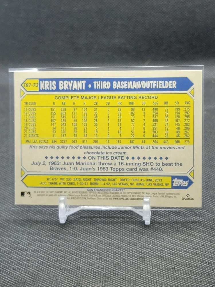 Immerse yourself in the world of San Francisco Giants baseball with our exclusive selection of sports trading cards. Featuring notable players like Barry Bonds, Willie Mays, and Buster Posey, these cards are a must-have for fans and collectors alike. Whether you're looking to complete your collection or find that one special card, our range offers a variety of inserts and rookies to choose from. Updated on December 10th, our inventory includes rising stars like Marco Luciano and Hunter Bishop, as well as established players like Mike Yastrzemski and Willie McCovey. With a focus on Major League Baseball, each card captures the spirit and energy of the game, making it the perfect addition to any collection or the ideal gift for the baseball enthusiast in your life.