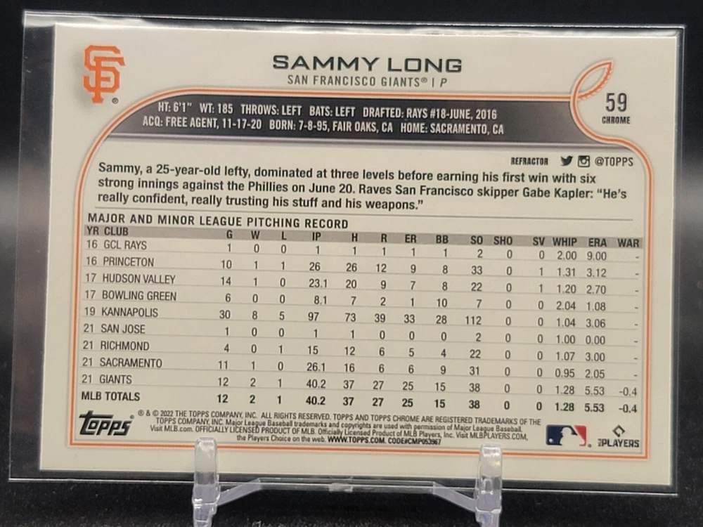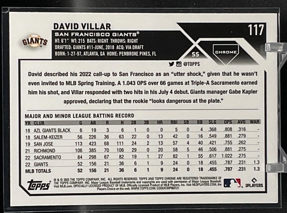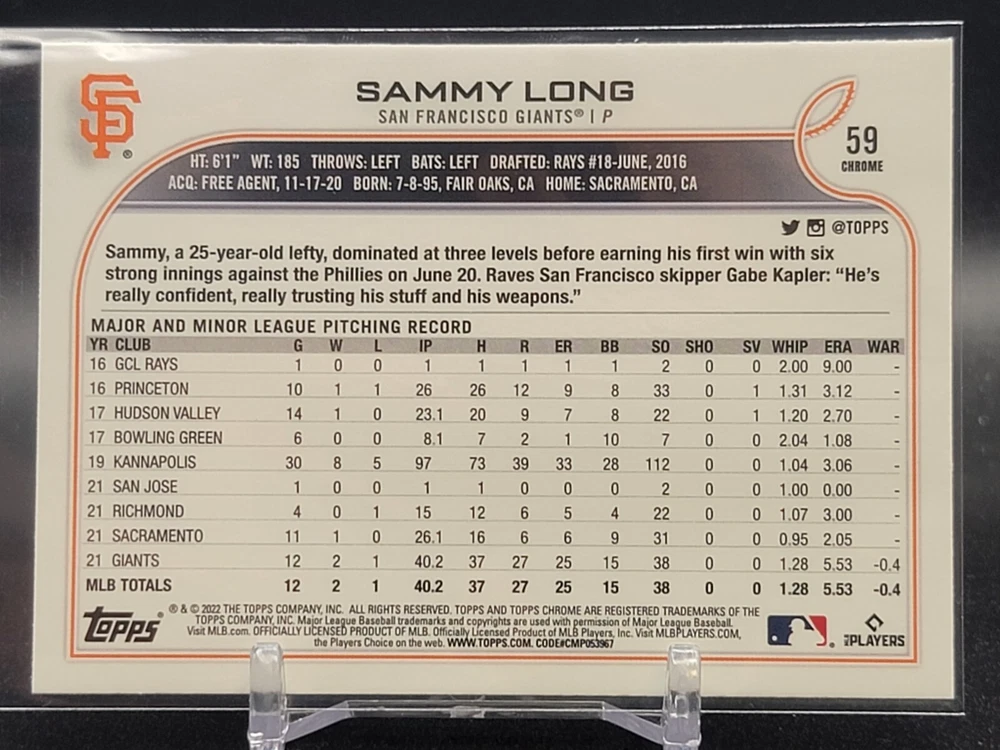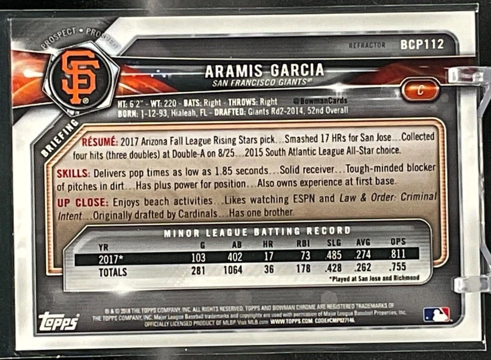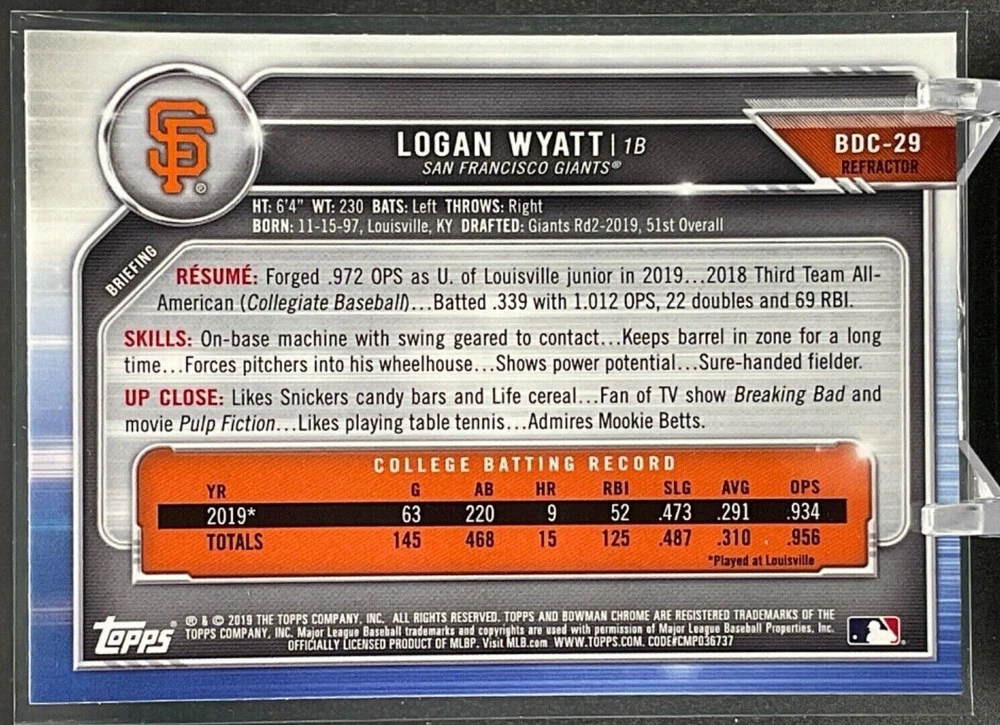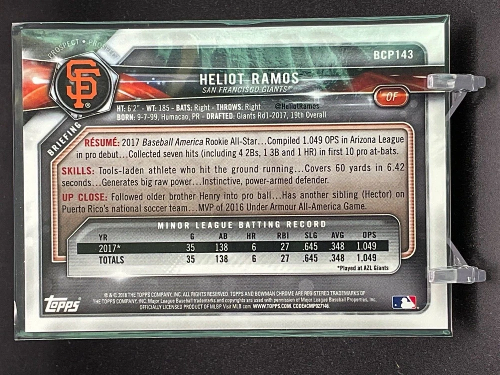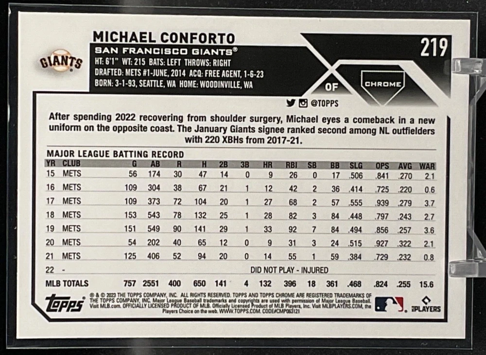 Immerse yourself in the world of San Francisco Giants baseball with our exclusive selection of sports trading cards. Featuring notable players like Barry Bonds, Willie Mays, and Buster Posey, these cards are a must-have for fans and collectors alike. Whether you're looking to complete your collection or find that one special card, our range offers a variety of inserts and rookies to choose from. Updated on December 10th, our inventory includes rising stars like Marco Luciano and Hunter Bishop, as well as established players like Mike Yastrzemski and Willie McCovey. With a focus on Major League Baseball, each card captures the spirit and energy of the game, making it the perfect addition to any collection or the ideal gift for the baseball enthusiast in your life.
