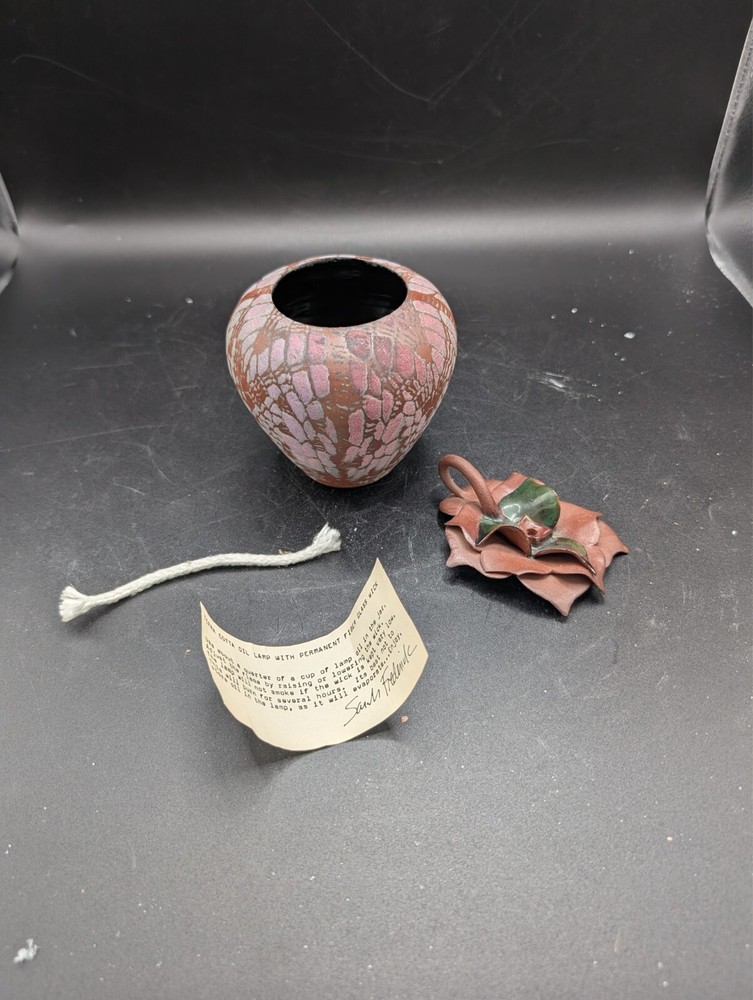 Sarah Frederick Hand Crafted Studio Art Pottery Oil Vase 4 Inch apple shaped...