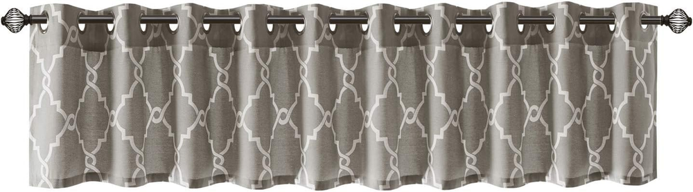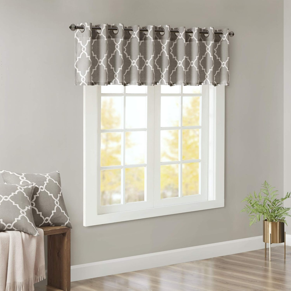 Absolutely love this valance! The soft beige fretwork on light grey adds such a stylish touch to my living room. It filters sunlight beautifully while still keeping the space bright. The grommet top makes hanging a breeze, and the fabric feels durable yet elegant. Perfect for adding a cozy, polished look without overwhelming the room. Highly recommend!