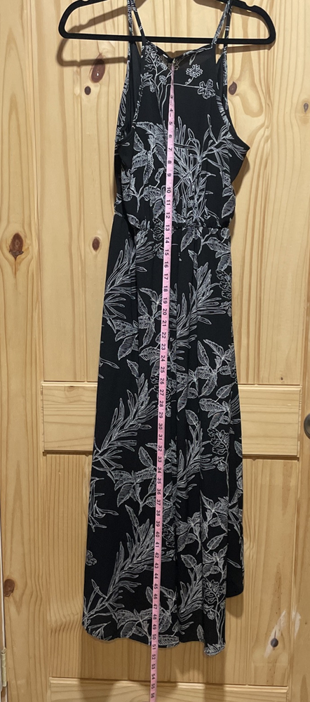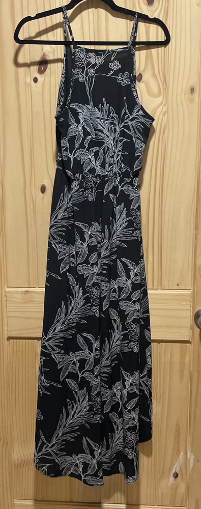 Scobe black-and-white floral print Hem-dip summer dress size large. Condition is Pre-owned - Excellent. Shipped with USPS Ground Advantage....