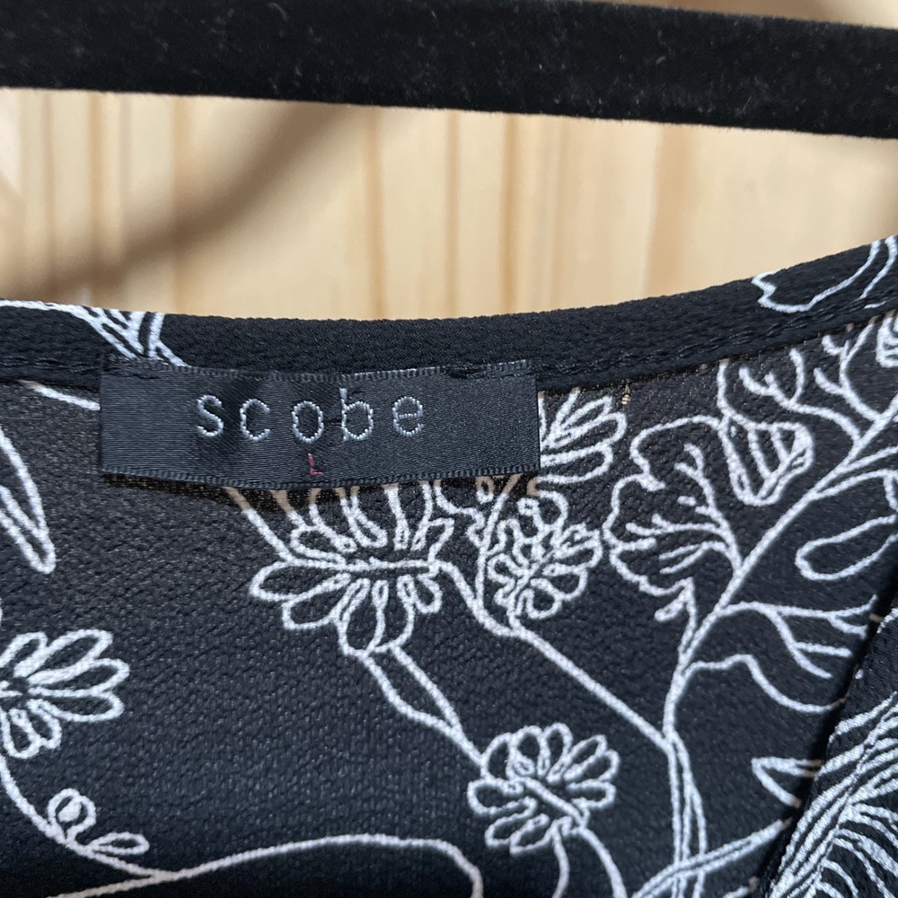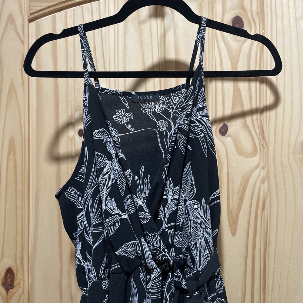 Scobe black-and-white floral print Hem-dip summer dress size large. Condition is Pre-owned - Excellent. Shipped with USPS Ground Advantage.
