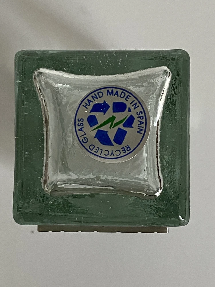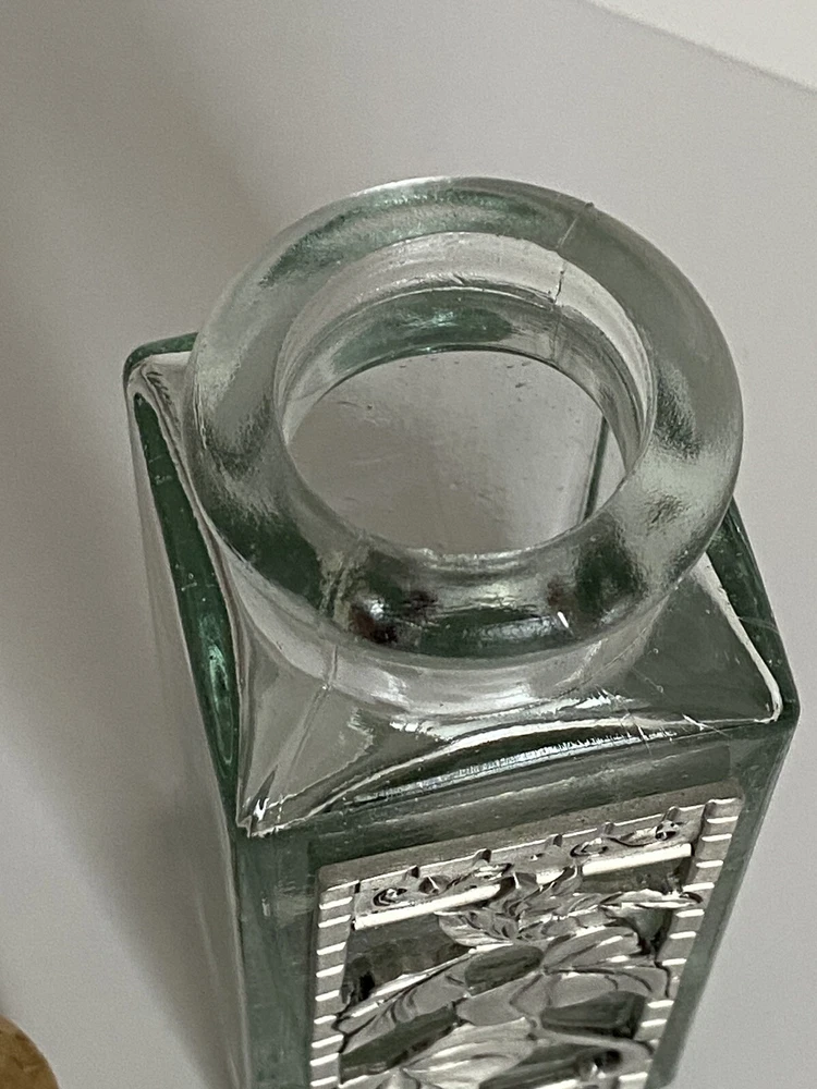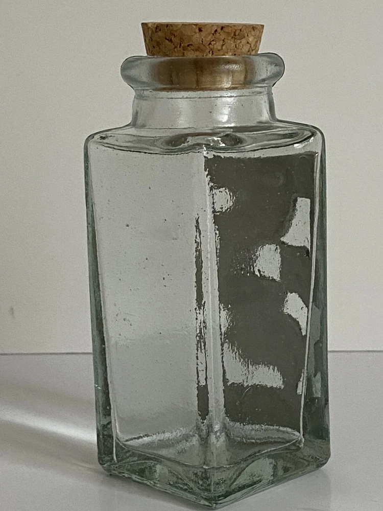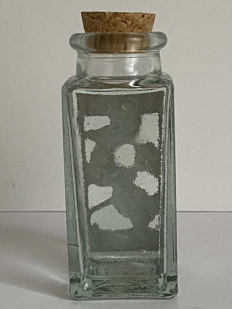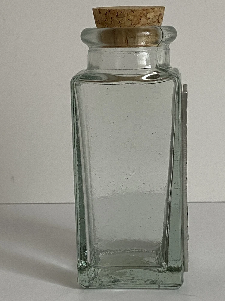 Seagull Pewter studio recycled square glass spice herb jar Spain cork stopper Glass jar made in Spain Pewter handcrafted in the artists' studio in Canada Dimensions: Height, including stopper = 4.75" tall Length of each side = 1.75" long Jar opening = 1" diameter * Clear recycled glass * Gorgeous handcrafted pewter piece has been affixed to one side, depicting leaves and scrolls * Use for spices, herbs, decor, or even small treasures! Excellent pre-owned condition. No damage. From a clean, smoke-free, pet-free home. We re-use clean and undamaged materials for packing and shipping whenever possible. (We love Mother Earth!)