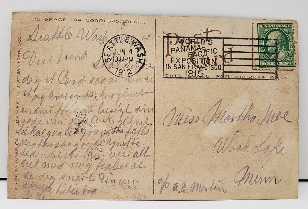 Divided back, posted 1912 with a World's Panama Pacific Exposition in San Francisco 1915 cancel. We do not erase notes or prices from previous dealers....