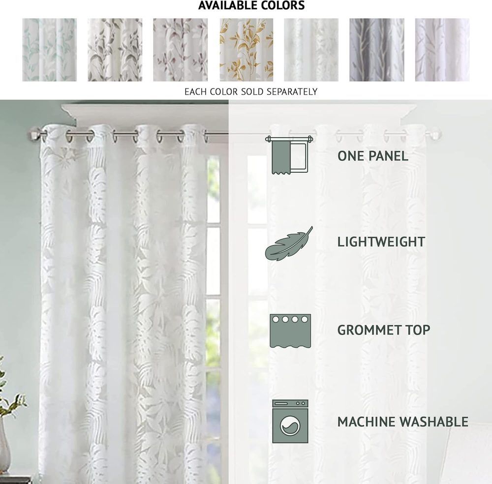 Love these curtains! The botanical burnout design is elegant and modern, giving my room a fresh, airy feel. The lightweight sheer fabric is perfect for layering, and the silver grommets make installation a breeze. They let in just the right amount of light while adding a subtle touch of nature. Hand washing is easy, and they dry beautifully. A stylish and functional upgrade for any space!