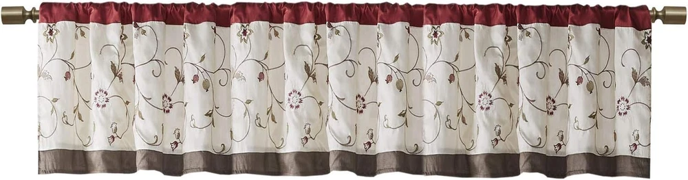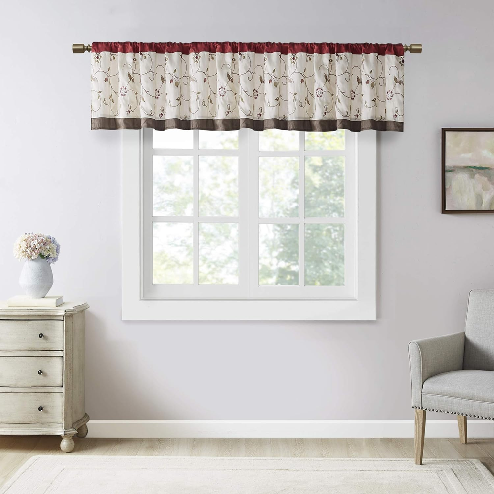 Menu Other Items Feedbacks About Us Contact Us Add To Favorites Serene Embroidery Room-Darkening Valance Window Treatment Rod Pocket/Back Tab Short Drape, 50X18", Red 100% Polyester Set Includes: 1 Window Valance This valance features delicate floral embroidery in rust spice and neutral hues, offering beautiful contrast for a sophisticated look. The pieced and pleated details provide extra dimension and charm to your home decor, while added lining helps filter the perfect amount of sunlight into your home. Simply hang on 3" rod pocket, fits up to a 1. 25" diameter rod. Care Instructions: Machine Washable Add simple elegance to any room with the Madison Park Serene Embroidered Valance. This valance features delicate floral embroidery in soft purple and grey hues, offering beautiful contrast for a sophisticated look. The pieced and pleated details provide extra dimension and charm to your home decor, while added lining helps filter the perfect amount of sunlight into your home. Simply hang on 3" rod pocket, fits up to a 1. 25" diameter rod. Item Specification Item model number MP41-1532 Style Transitional Weave Type Plain Number of Items 1 Assembly required No Closure Type Rod pocket Pattern Floral Country of Origin China Package Weight 0.32 Kilograms Theme Floral Opacity Light-filtering Unit Count 1.0 Count Room Type Bedroom, Living Room, Home Office, Dining Room Product Dimensions 50"L x 18"W Batteries required No Material Polyester Top Style Rod Pocket Model Name Serene Faux Silk Comforter Set and Window Curtain Seasons All Season Lining Description Polyester Is Discontinued By Manufacturer No Specific Uses For Product Decorative Included Components 1 Window Valance Item Thickness 0.13 Inches Curtain Form Valance Water Resistance Level Not Water Resistant Item Weight 7.8 ounces Size 18"W x 50"L (Pack of 1) Compatible with Rod Size 3 Inches Special Feature Rod Pocket Color Red Global Trade Identification Number 00675716616137 Recommended Uses For Product Indoor Fabric Type 100% Polyester Product Care Instructions Machine Wash Number of pieces 1 Dimensions Shipping Returns Additional Info Product Dimensions: 18.0 "w x 50.0 "w. Weight: 7.8 oz Fast shipping is very important for us. Our standard shipping service is FREE. Your order will be shipped within 1-3 business days upon full payment received. Most items are delivered within 3-5 business days, however, please allow 3-10 business days. We are shipping only to USA. We only ship to the confirmed Paypal address. We reserve the right to cancel any order for any reason at any time. We are not responsible for undeliverable addresses. We offer a 30 day return policy from checkout winning date. Your satisfaction is guaranteed! If for any reason you are unhappy with your item, just return it within 30 days for a full refund, minus shipping cost. Please contact us prior to initiating a return so that we can issue you a refund authorization. Items defective upon receipt must be packaged in their retail packaging as if new and returned with a detailed description of the problem. Return shipping fees are not refundable. We reserve the right to decline any returns if the above guidelines are not followed. All of our items, unless otherwise stated, will only run on 120 volts. Please check to make sure your country complies with these specifications. If you have a problem or question regarding your transaction please contact us before leaving any type of feedback. We will work with you to resolve any problem you may have.