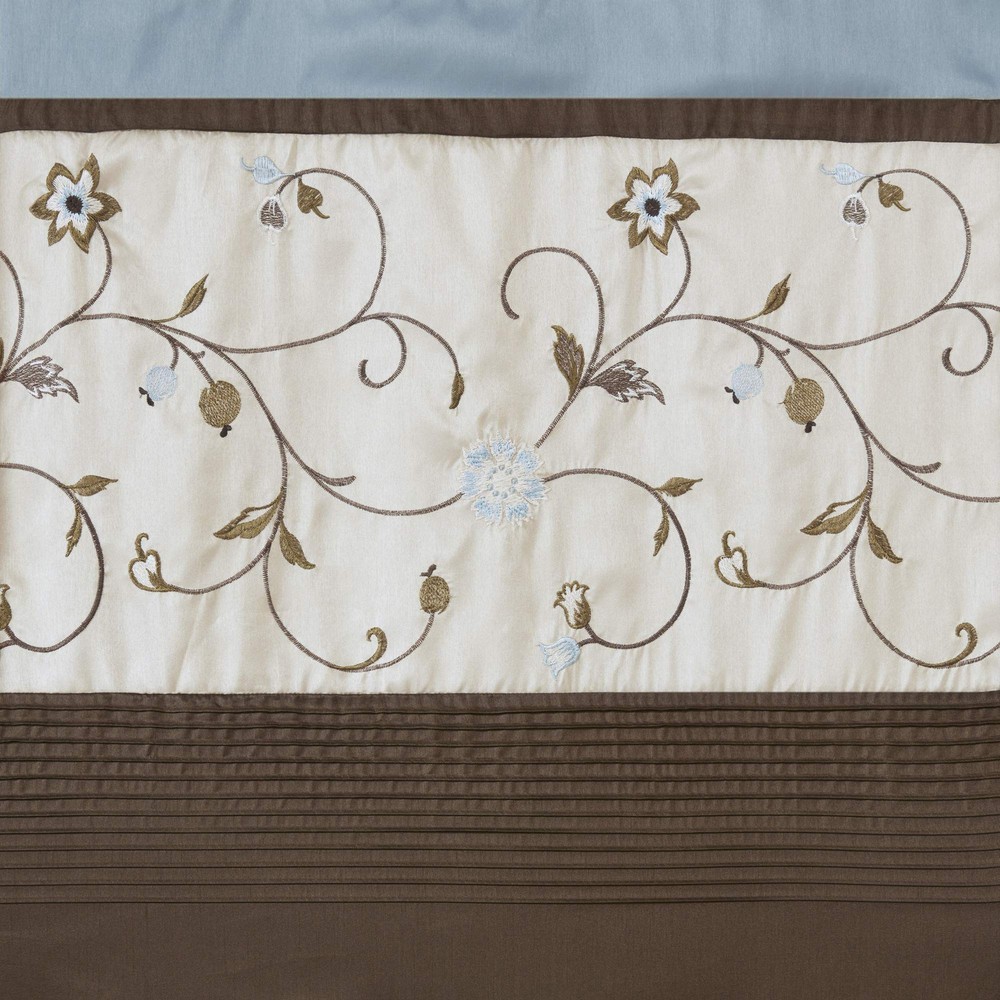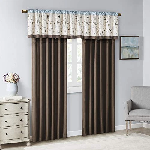 Add simple elegance to any room with the Serene Embroidered Valance. This valance features delicate floral embroidery in soft purple and grey hues, offering beautiful contrast for a sophisticated look. The pieced and pleated details provide extra dimension and charm to your home decor, while added lining helps filter the perfect amount of sunlight into your home. Simply hang on 3" rod pocket, fits up to a 1. 25" diameter rod. Floral embroidery design Pieced border detailing Added lining to help filter light and provide some room darkening Rod pocket top finish 100% Polyester with embroidery detail and polyester lining, rod pocket 1 Window Valance:50x18" MACHINE WASH COLD, GENTLY AND SEPERATELY, DO NOT BLEACH, TUMBLE DRY LOW, REMOVE PROMPTLY, DO NOT IRON.