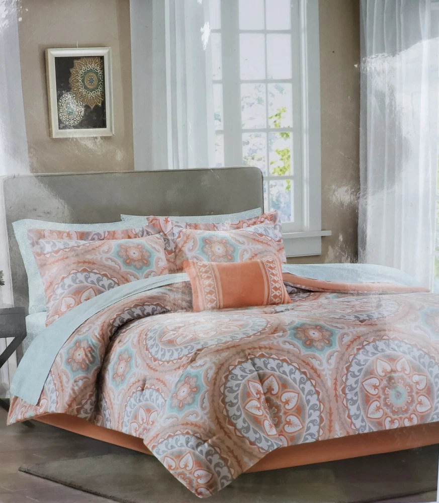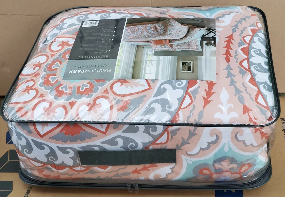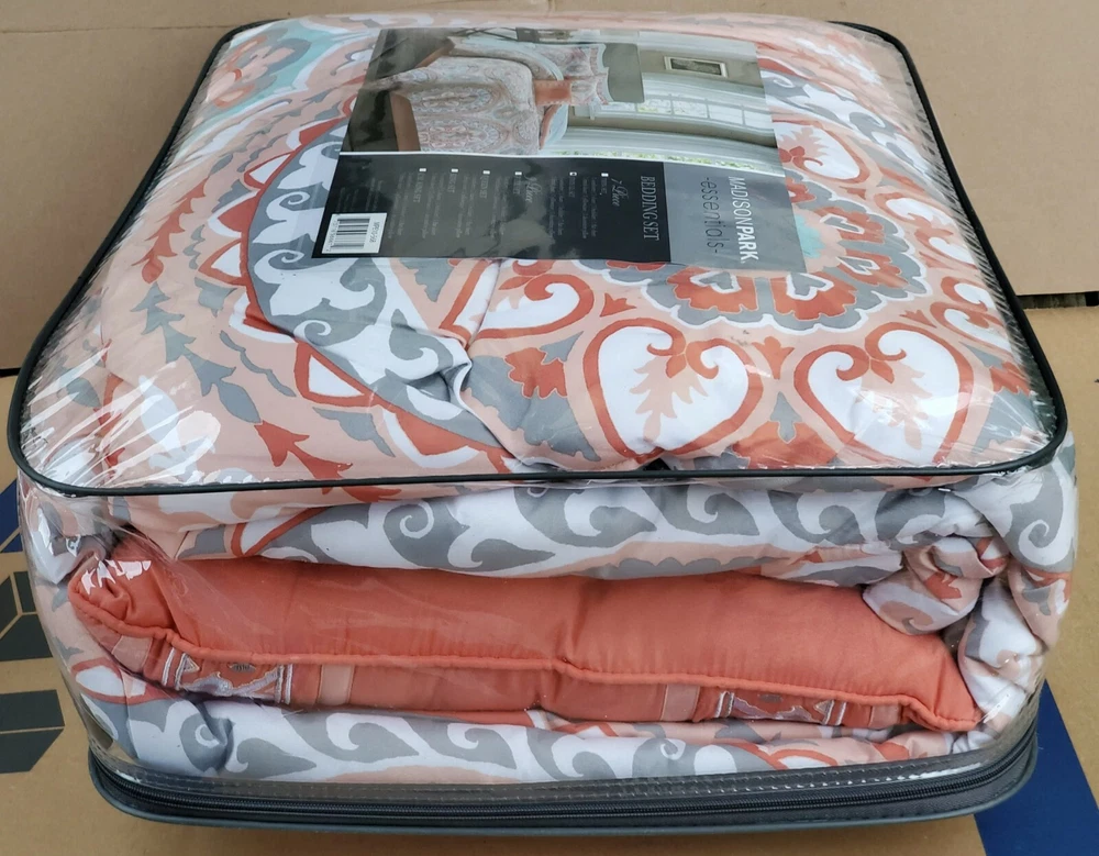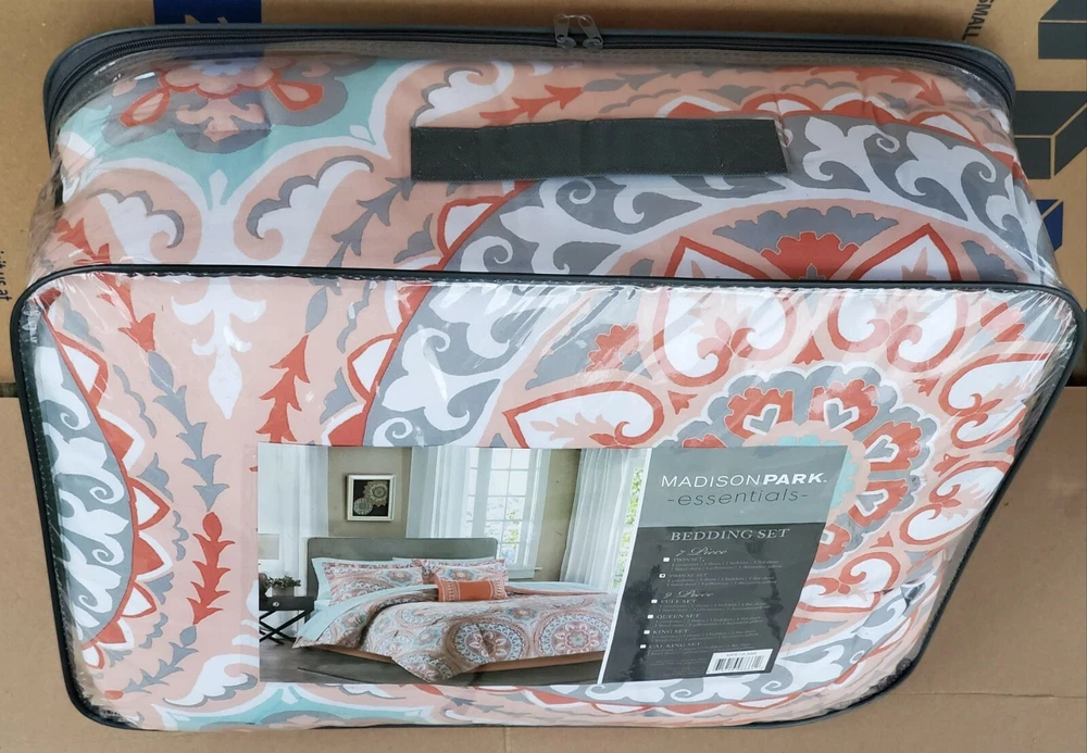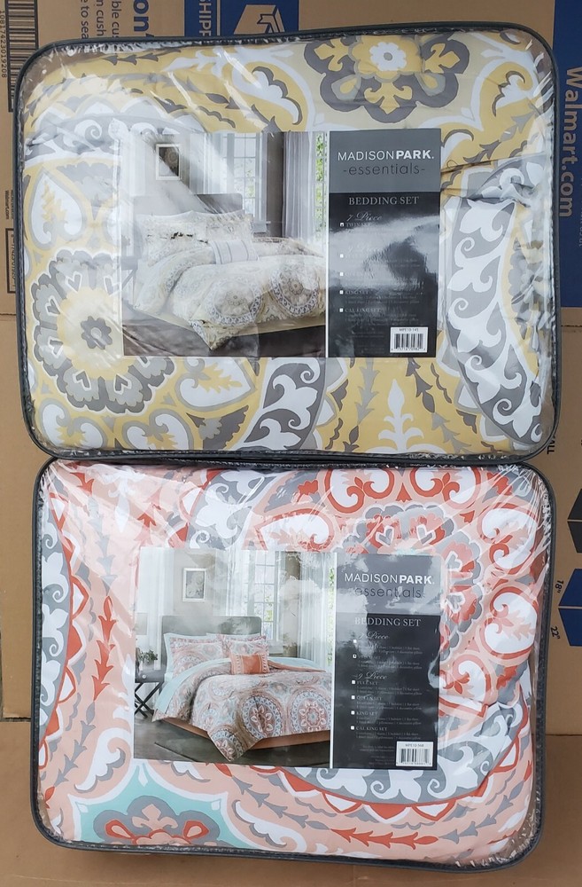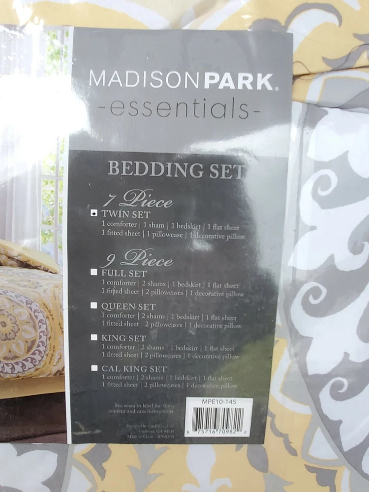 Description: Serenity Complete Bed and Sheet Set by Madison Park Essentials. 100% Polyester. Condition is New with tags. The price is for one comforter set. There is a discount for buying more than one and a shipping discount. Contents & Measurements: Twin: 1 Comforter 68"x86" 1 Standard Sham 20"x26" 1 Pillowcase 20"x30" 1 Flat Sheet 66"x96" 1 Bed Skirt 39"x75" +15" 1 Fitted Sheet 39"x75" +12" 1 Decorative Pillow 12"x18" Twin XL: 1 Comforter 68"x90" 1 Standard Sham 20"x26" 1 Pillowcase 20"x30" 1 Flat Sheet 66"x102" 1 Bed Skirt 39"x80" +15" 1 Fitted Sheet 39"x80" +12" 1 Decorative Pillow 12"x18" Shipping: Carrier: FedEx Ground or FedEx Home Delivery. Shipping Time: Departs same day or the following business day. **If you have time, check out some of my other items. If possible, I will combine shipping. You will need to message me before you place an order to get this discount.**