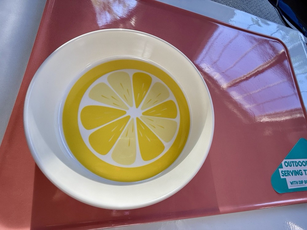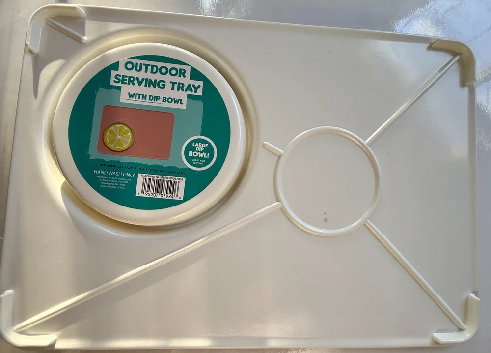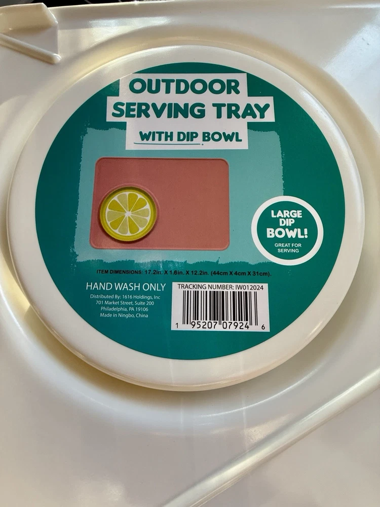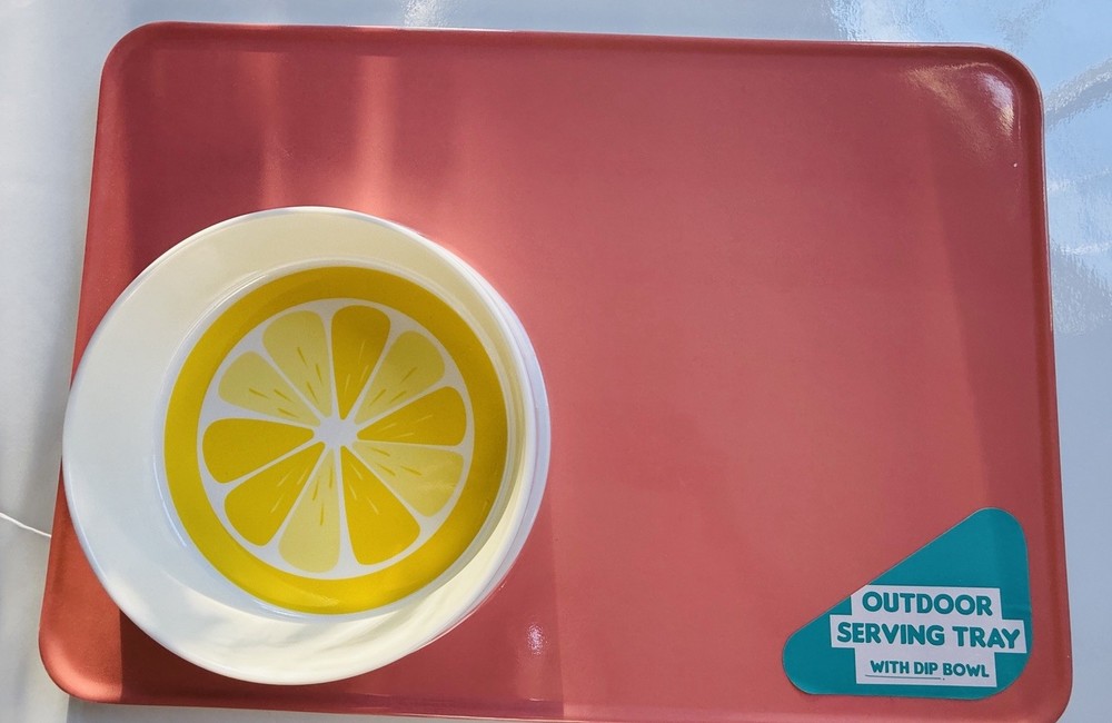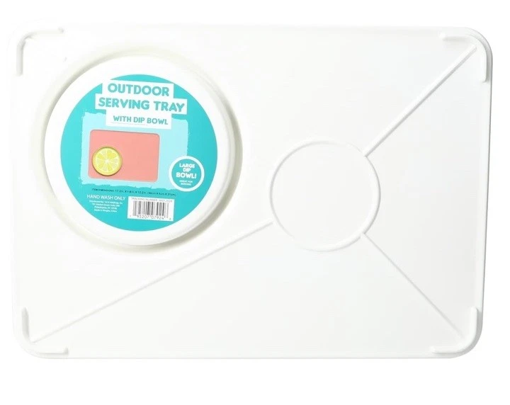 - brand new lemon design - great for parties and celebrations - there may be minor scuffs - great condition! - dips for nachos, bread, etc Use an Outdoor Serving Tray to take your food presentation seriously! Perf for parties, charcuterie & picnics. Features a large bowl for easy dipping - yes, please! Size: 17.2in (W) x 12.2in (L) x 1.6in (D) Care Instructions: Hand wash only. Country of Origin: Imported