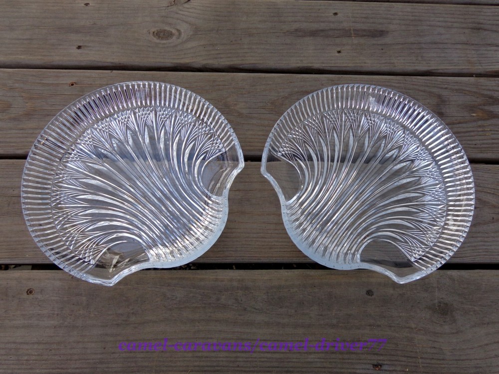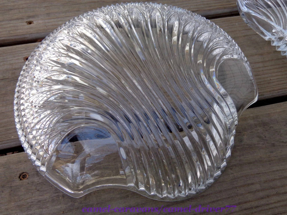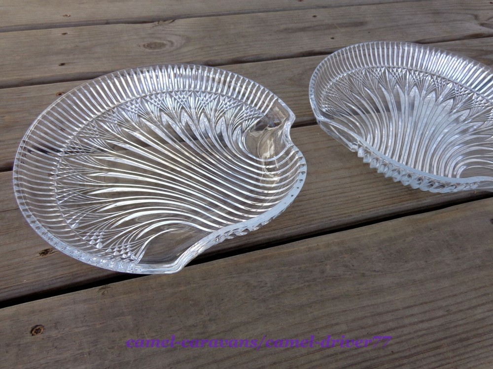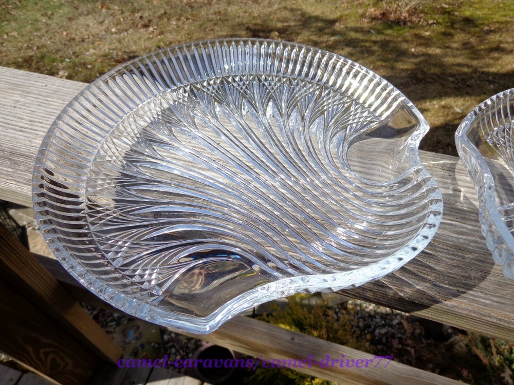 Set of 2 Studio Nova (Mikasa) CUT CRYSTAL Shell Shaped Serving Plates 10.5" Nice, heavy pieces. Catch the light beautifully! Excellent pre-owned condition. No chips or cracks. A few minor wear marks on bottom. (Not really noticeable) *** See pictures as part of description** All items come from a smoke free and pet free home. Please email me with any questions as all sales are final. Payment is expected within 48 hours. Items will be shipped next business day of receiving payment. Thank you for looking!