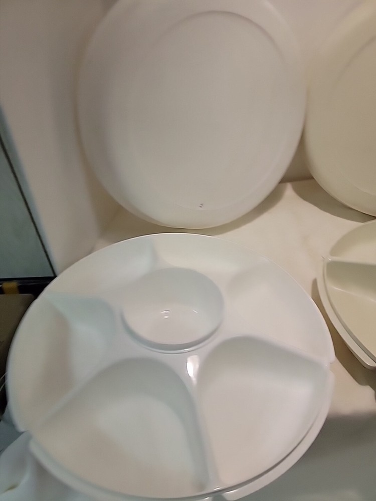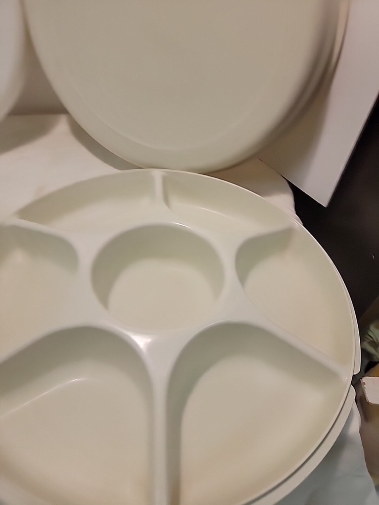Love this vintage Tupperware veggie tray! The snap-on lid keeps everything fresh, and the multiple compartments make organizing snacks a breeze. The durable plastic holds up well, and the classic white design fits any kitchen. Perfect for parties or everyday use—highly recommend!