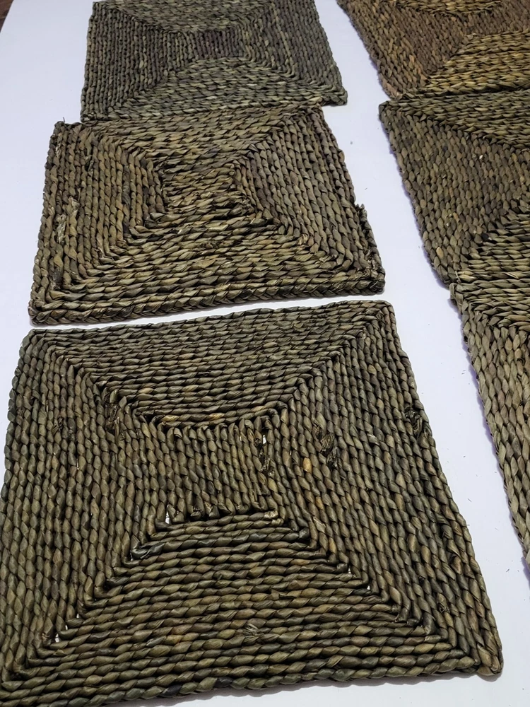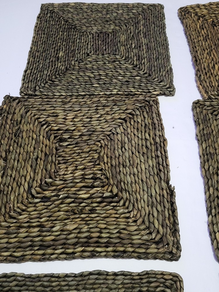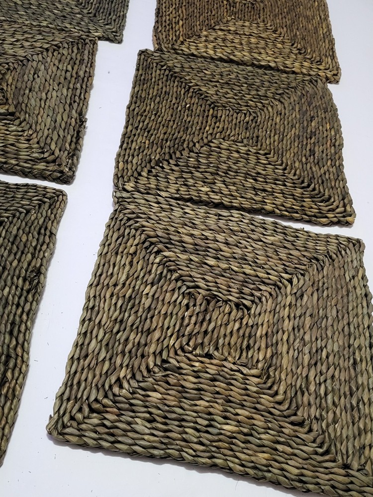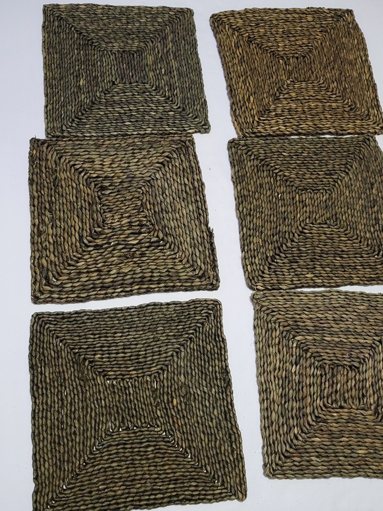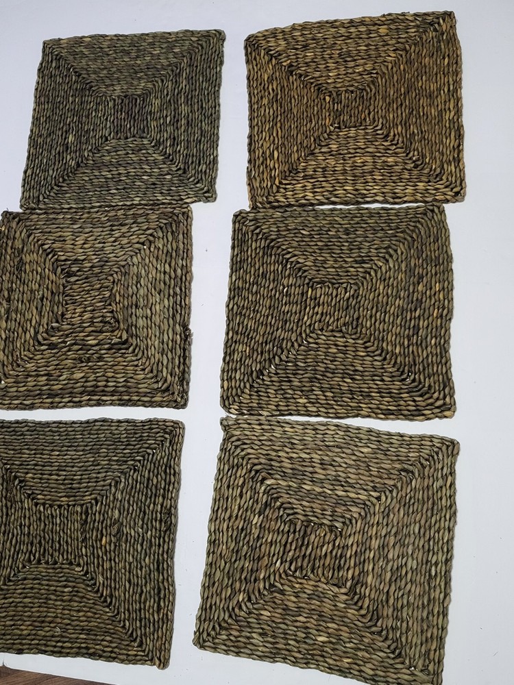 Set (6) Pottery Barn Beachcomber Handwoven Square Straw Seagrass Placemats 15”. Condition is Pre-owned. Shipped with USPS Ground Advantage....