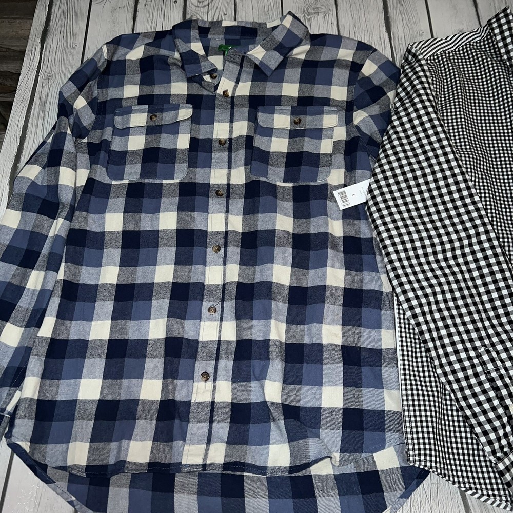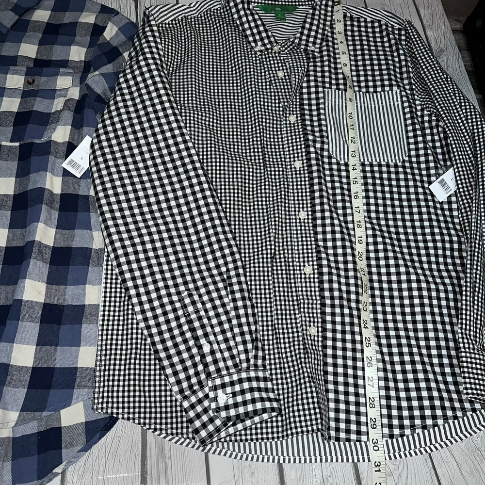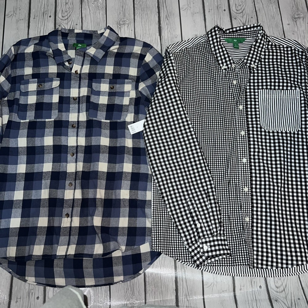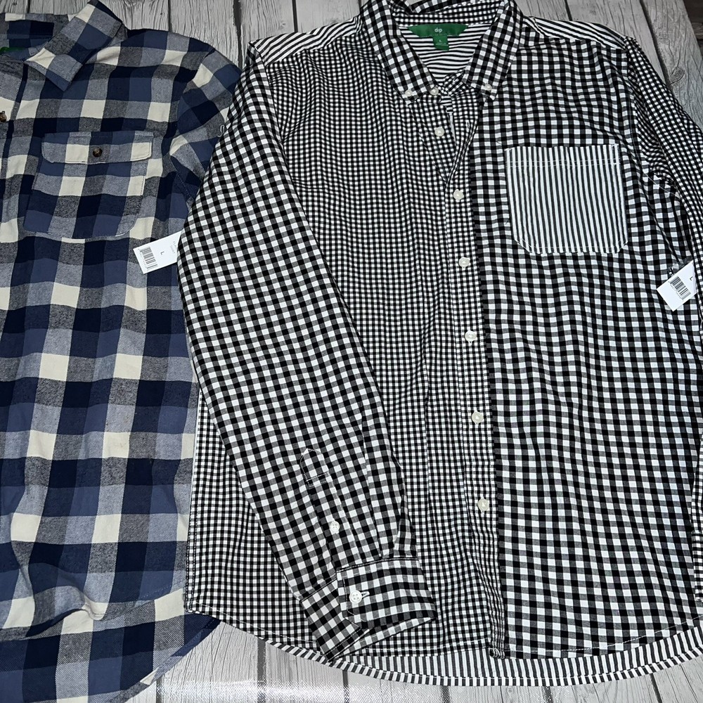 Set of 2 shirts Dip brand Blue flannel : armpit to armpit is 22.5” & Black is 100% cotton armpit to armpit is 23” Both sz Large All items are smoke free, eco friendly environment, & packages will be shipped with recycled packaging material. * BUY WITH CONFIDENCE! I am a #1 eBay seller who is very trusted! If you have any questions please reach out and I will respond right away. If serious buyer, I can also send additional photos of the item you're interested in. *COMBINED SHIPPING* Please add all the items you'd like to purchase from my store to your cart. When you open your cart, you'll see the option to "Request combined shipping" next to my username on the right. I'll then send you an invoice with the combined shipping cost. Thanks for looking!