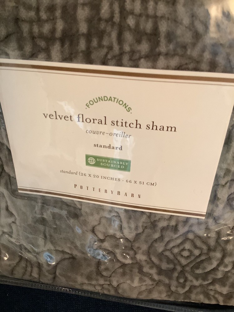 Set Of 2 Pottery Barn Foundations Velvet Floral Stitch Sham Standard Gray 26x20". In perfect condition....