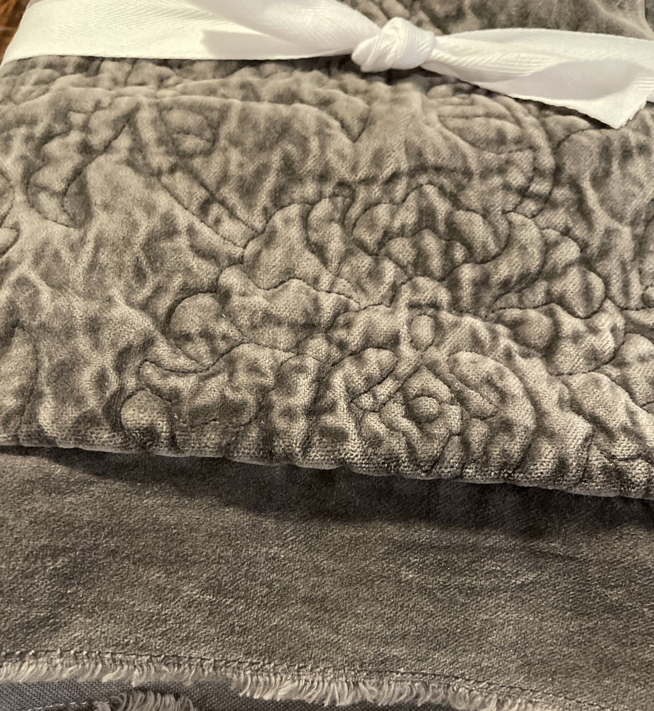 Set Of 2 Pottery Barn Foundations Velvet Floral Stitch Sham Standard Gray 26x20"....