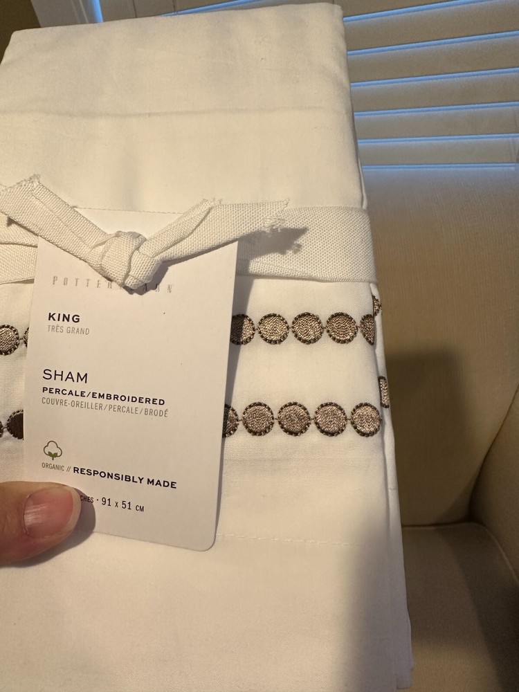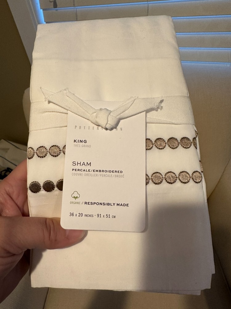 Set of 2 Pottery Barn Pearl Dot KING Sham Simply Taupe White Organic Cotton NEW - Photos show coordinating bedding (not included) listing is for one King sham only....