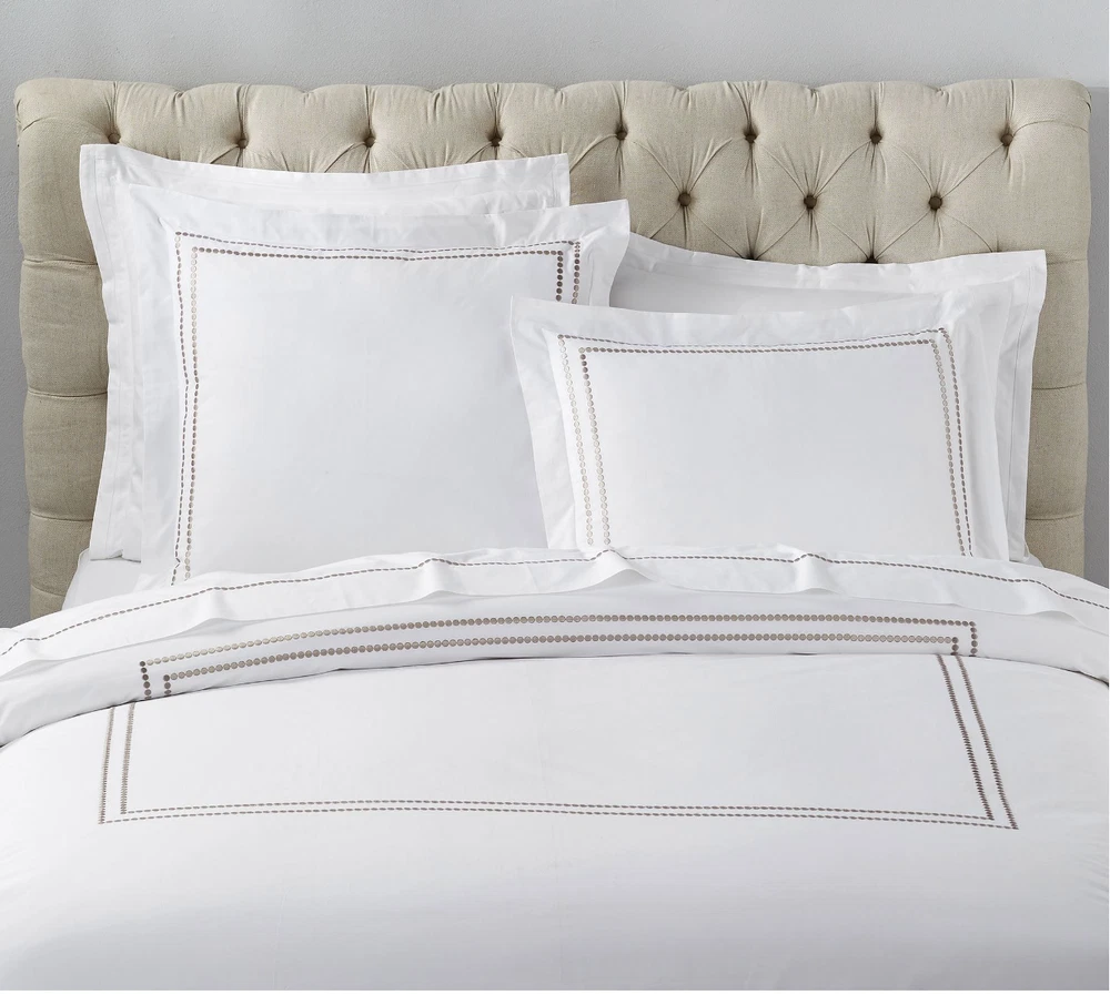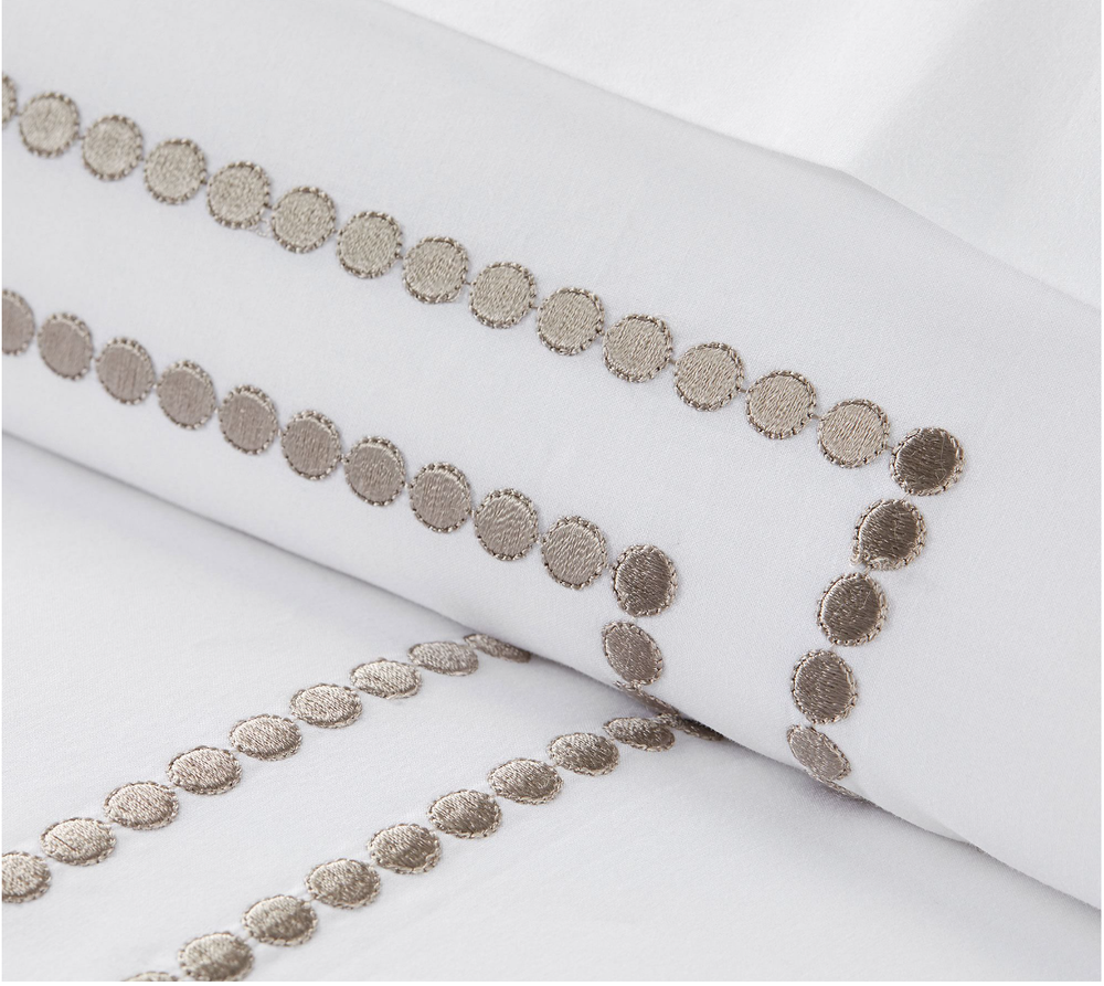 Set of 2 Pottery Barn Pearl Dot KING Sham Simply Taupe White Organic Cotton NEW - Photos show coordinating bedding (not included) listing is for one King sham only.