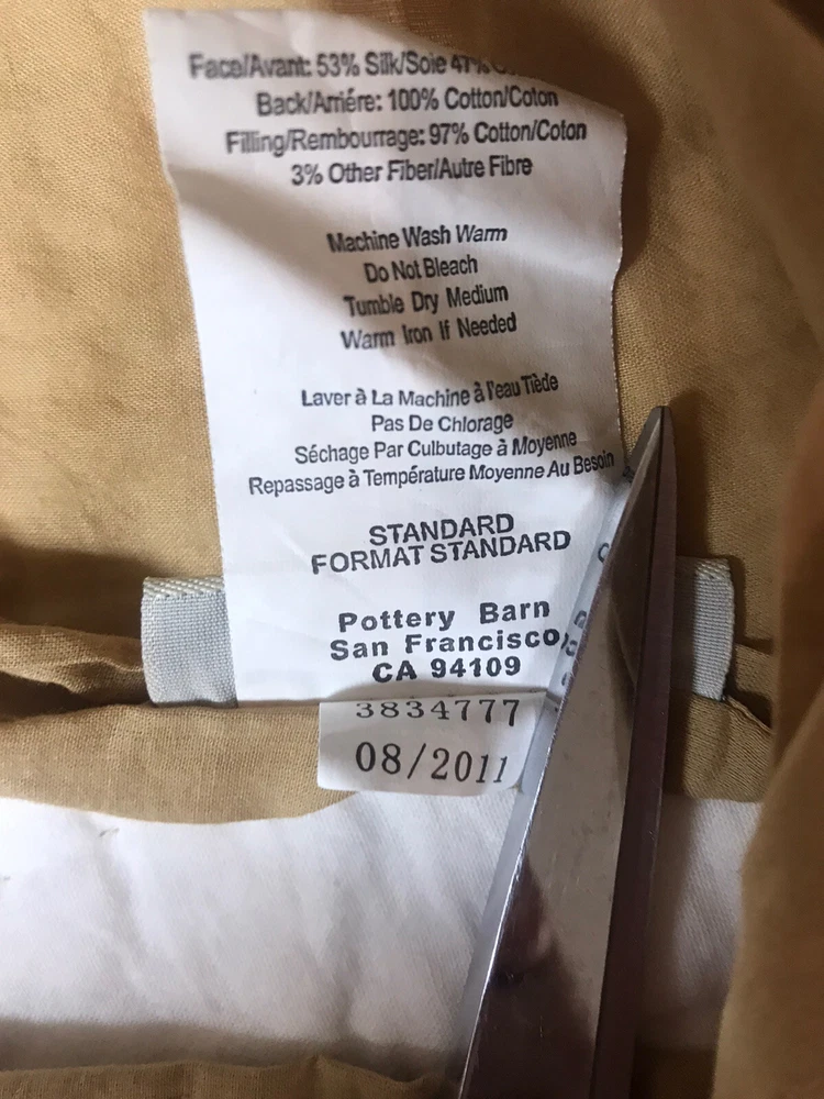 2 Pottery Barn Silk patterned Quilted Pillow Covers. Gold Beige standard 27” rectangles. No damage or stains. Beautiful gold pattern on one side and solid on the other. Envelope entrance. Smoke and pe...