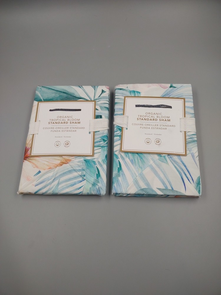 Set of 2 Pottery Barn Teen Organic Tropical Bloom Standard Shams Size: Standard ~ 26" x 20" Color: White with Multicolored tropical theme/pattern Does have like twisted stitch pattern throughout Brand New! Tag does have sharpie on it but is not affected. Was unfolded to confirm size. Also have set of matching full/queen duvet HANDLING TIME IS SET FOR 3 BUSINESS DAYS TO ALLOW PAYMENT TO FULLY PROCESS. ONCE EBAY SENDS OUT THE FUNDS, THE ITEM WILL SHIP ANY GROSS OVERCHARGE ON SHIPPING WILL BE REFUNDED