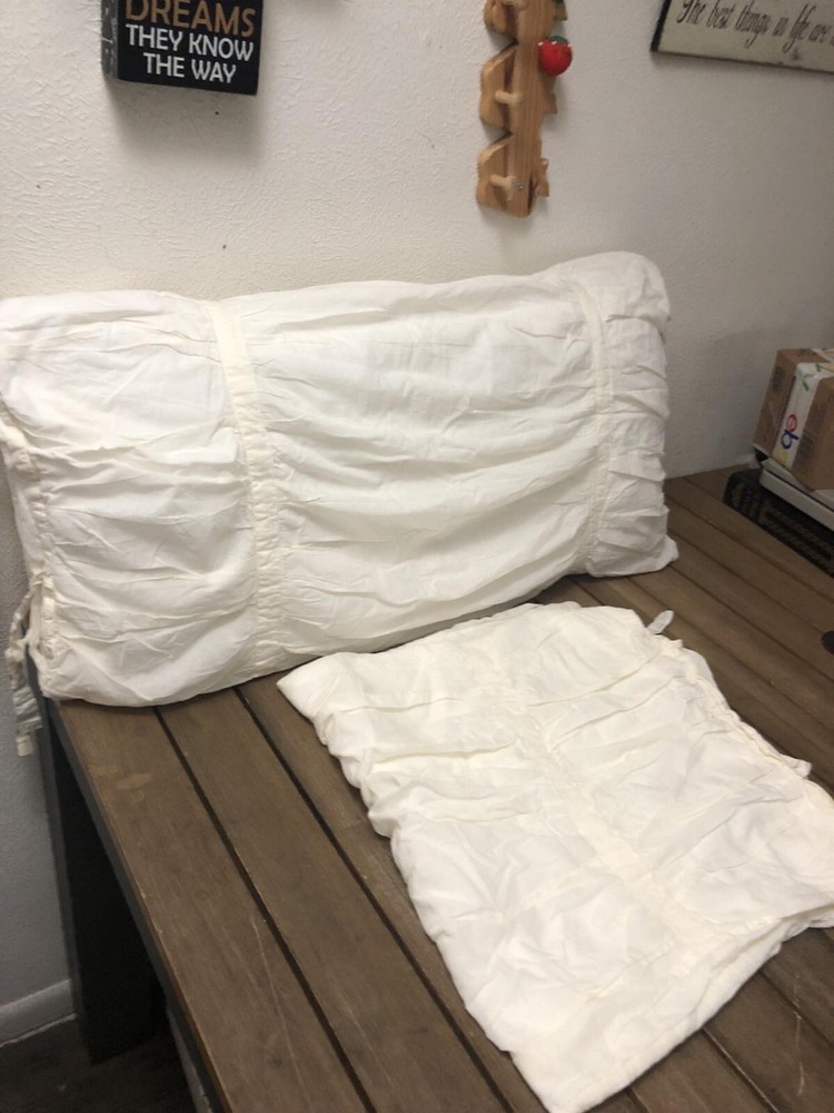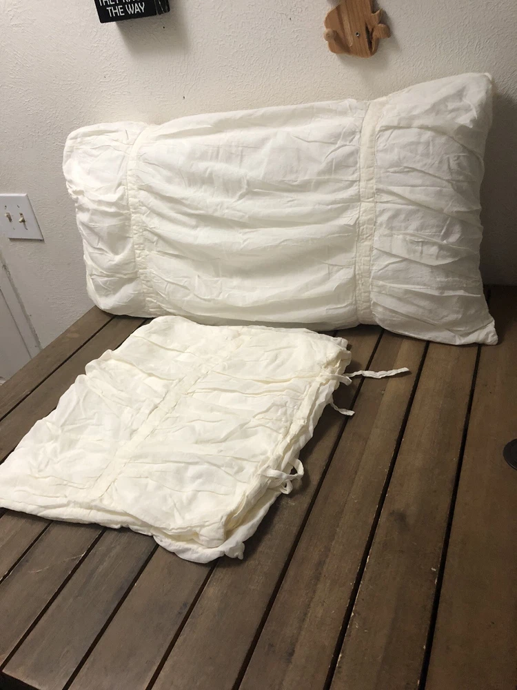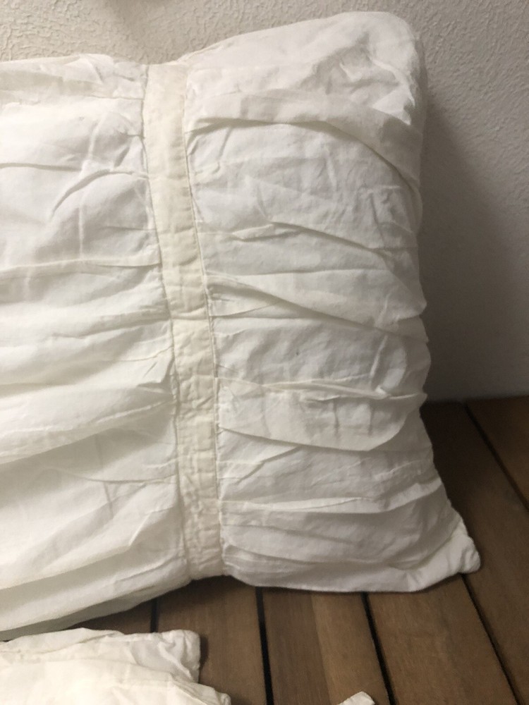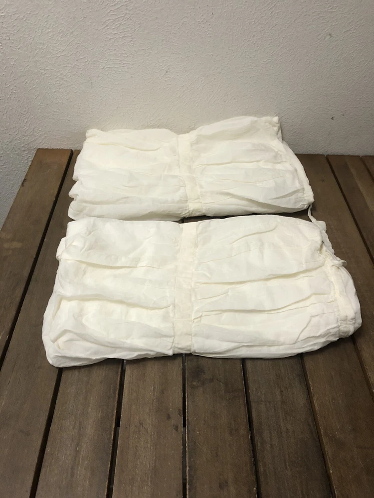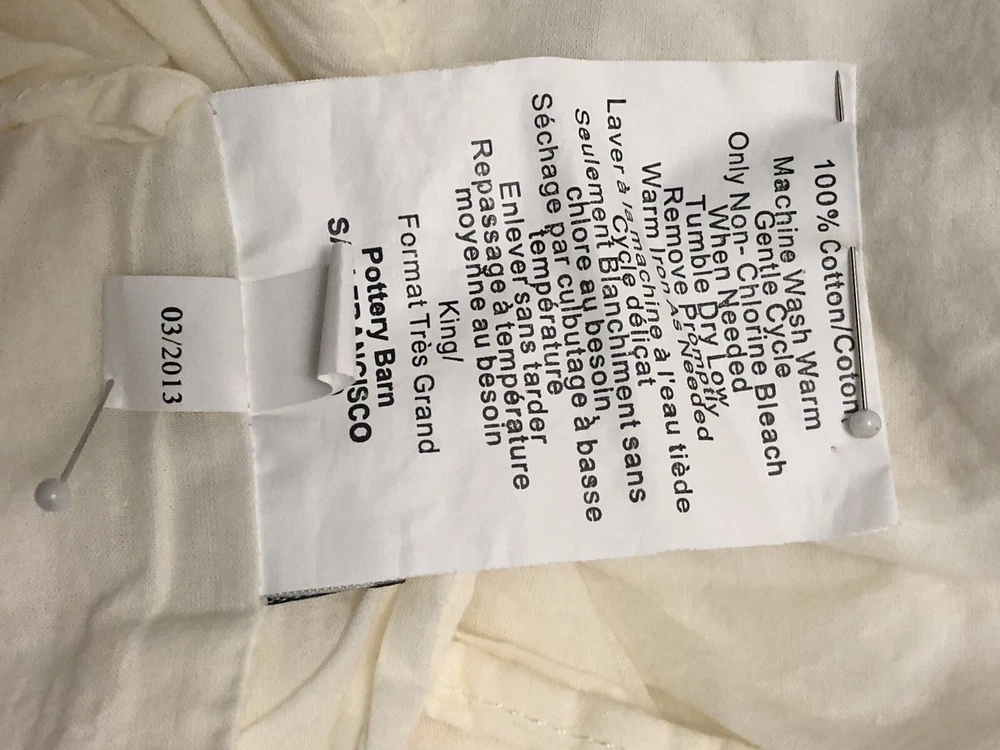 Add a touch of luxury to your bedroom with these Rare beautiful Pottery Barn King Shams. Made from 100% cotton with a soft satin finish, these shams feature pleats/ ruffled for a modern and sophisticated look. The ivory/cream color complements any decor, while the rectangular shape and size of 36" x 19" make them perfect for king-sized beds. These shams are easy to care for with machine wash and tumble dry instructions, and are suitable for both teens and adults. The solid pattern and modern style make them versatile for any bedroom theme. Bring a touch of elegance to your room with this set of 2 Pottery Barn King Shams. Great condition, no wear, no stains. USPS Ground Shipping