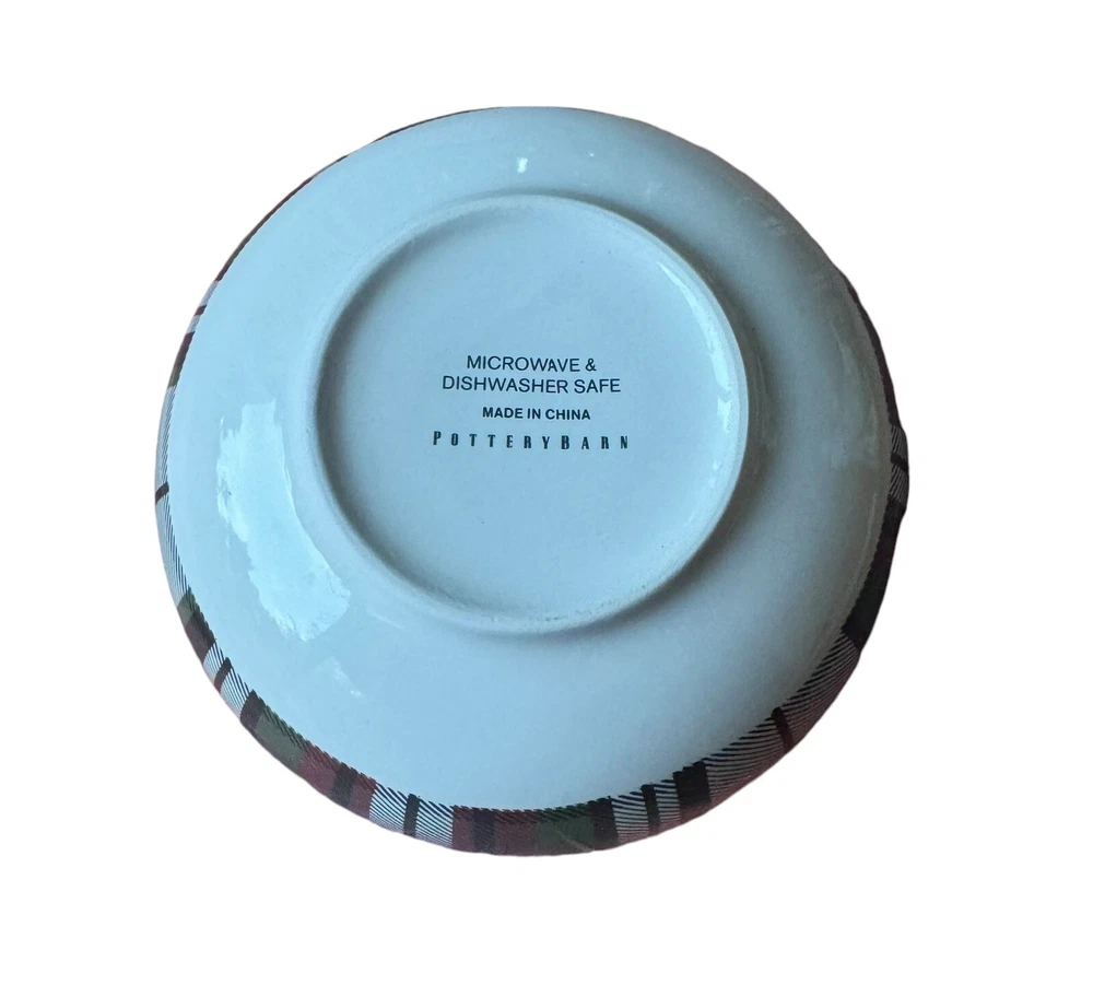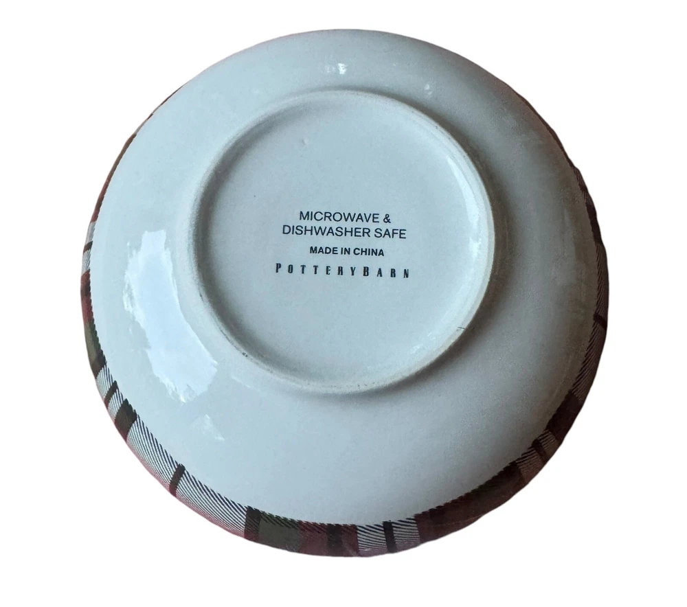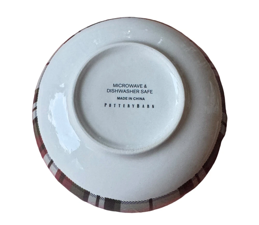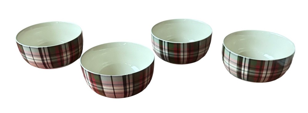 Add a touch of traditional elegance to your table with this set of four Pottery Barn Denver plaid soup/cereal/pasta bowls. Crafted from durable stoneware material, these bowls feature a festive red/green/off white color scheme that is perfect for the holiday season. Measuring 3.5 inches in height and 5.5 inches in width, they are the ideal size for serving soup, cereal, or pasta. These bowls are perfect for adults and are sure to impress your guests with their stylish design and high-quality construction. Made in China, they are a great addition to any home and are sure to become a cherished part of your tableware collection. Celebrate the holiday season in style with this beautiful set of bowls from Pottery Barn.