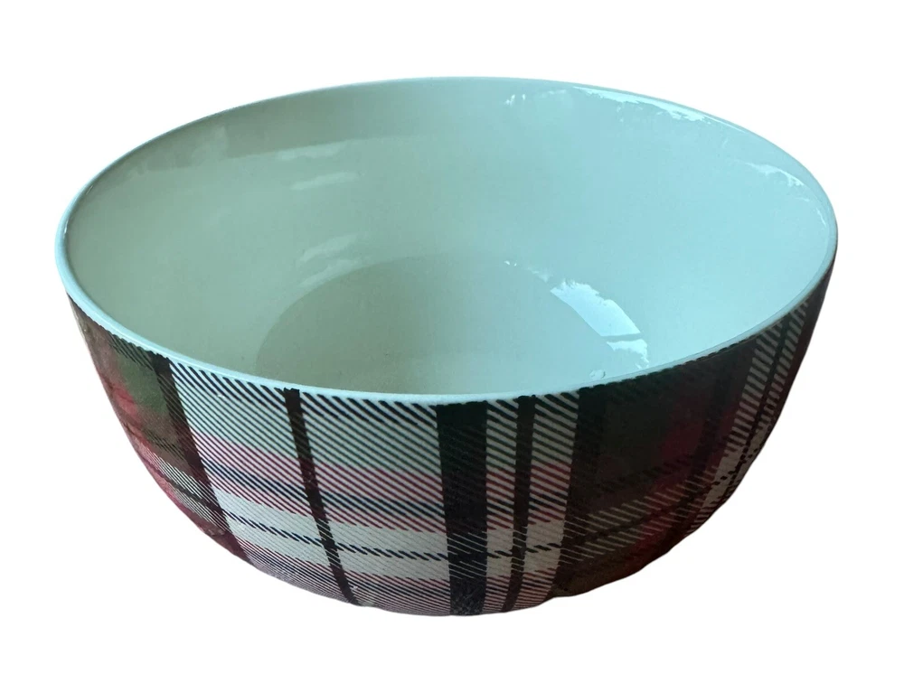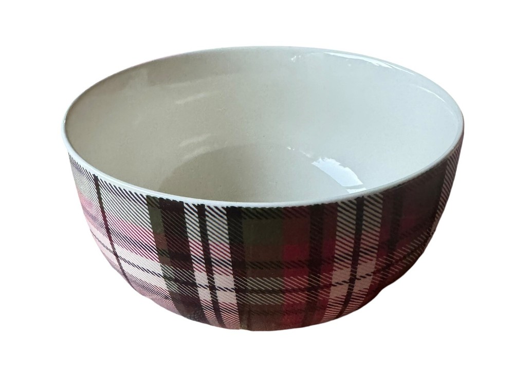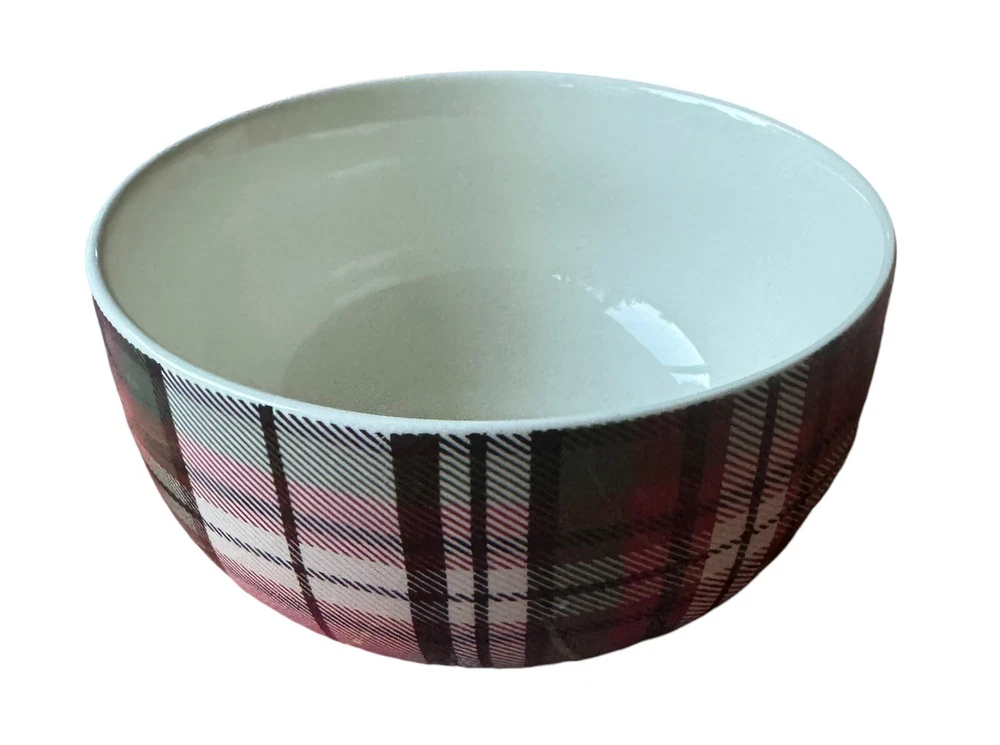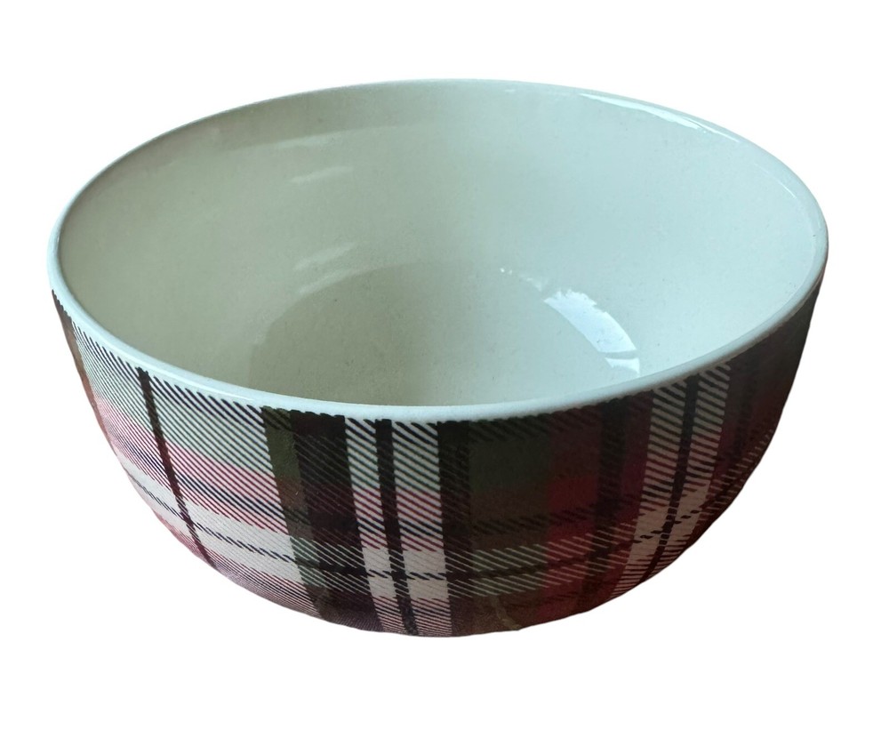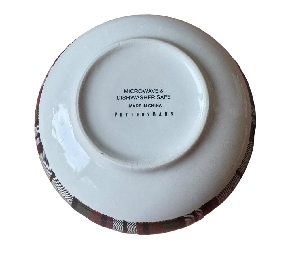 Add a touch of traditional elegance to your table with this set of four Pottery Barn Denver plaid soup/cereal/pasta bowls. Crafted from durable stoneware material, these bowls feature a festive red/green/off white color scheme that is perfect for the holiday season. Measuring 3.5 inches in height and 5.5 inches in width, they are the ideal size for serving soup, cereal, or pasta. These bowls are perfect for adults and are sure to impress your guests with their stylish design and high-quality construction. Made in China, they are a great addition to any home and are sure to become a cherished part of your tableware collection. Celebrate the holiday season in style with this beautiful set of bowls from Pottery Barn.
