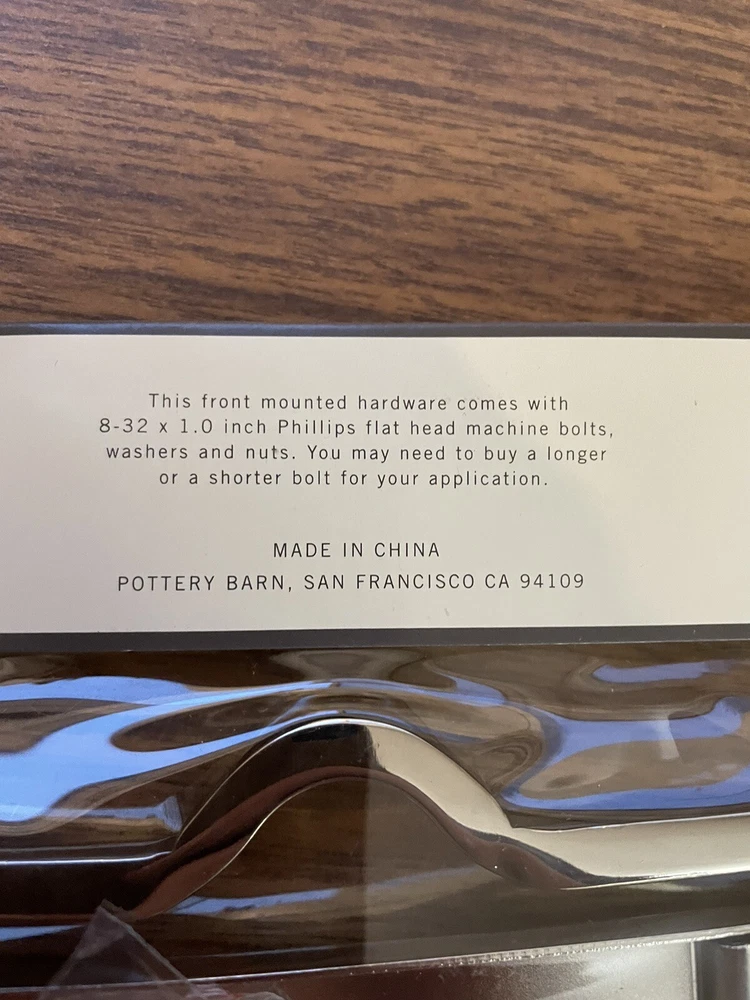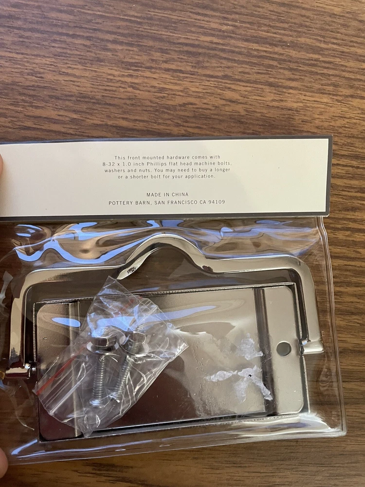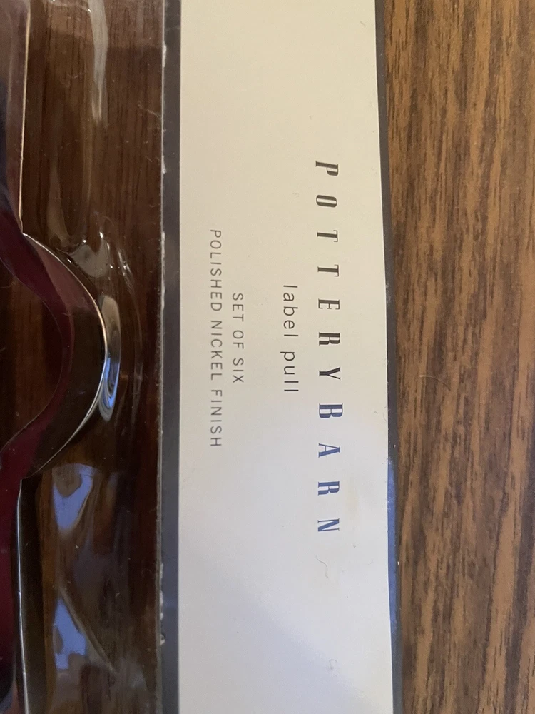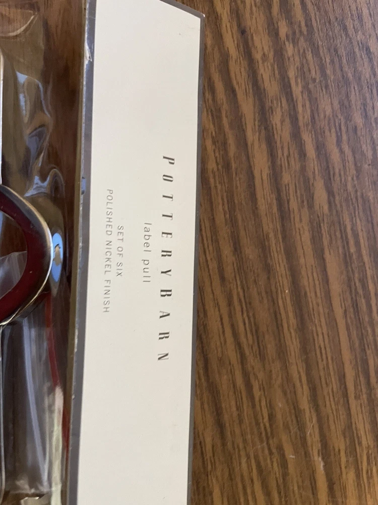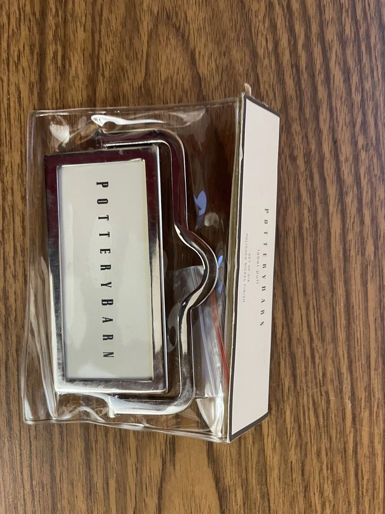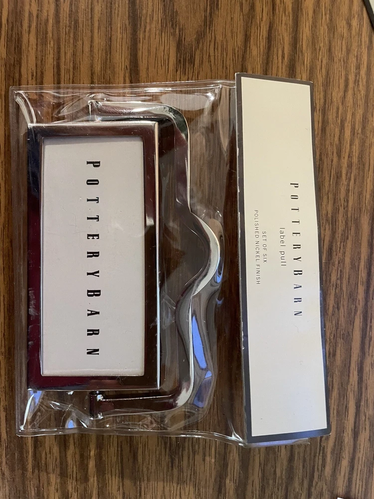 Set Of 6 Pottery Barn Front Mounted Hardware Label Pull Chrome 4.5" x 3" New- bought for a project and did use. New in package condition....
