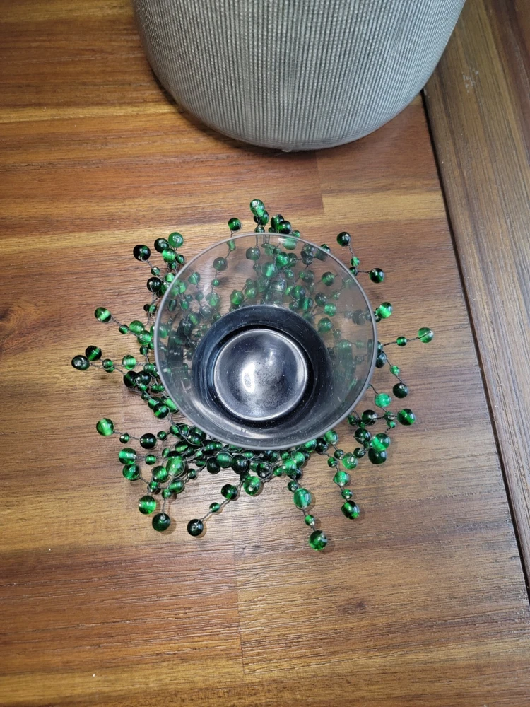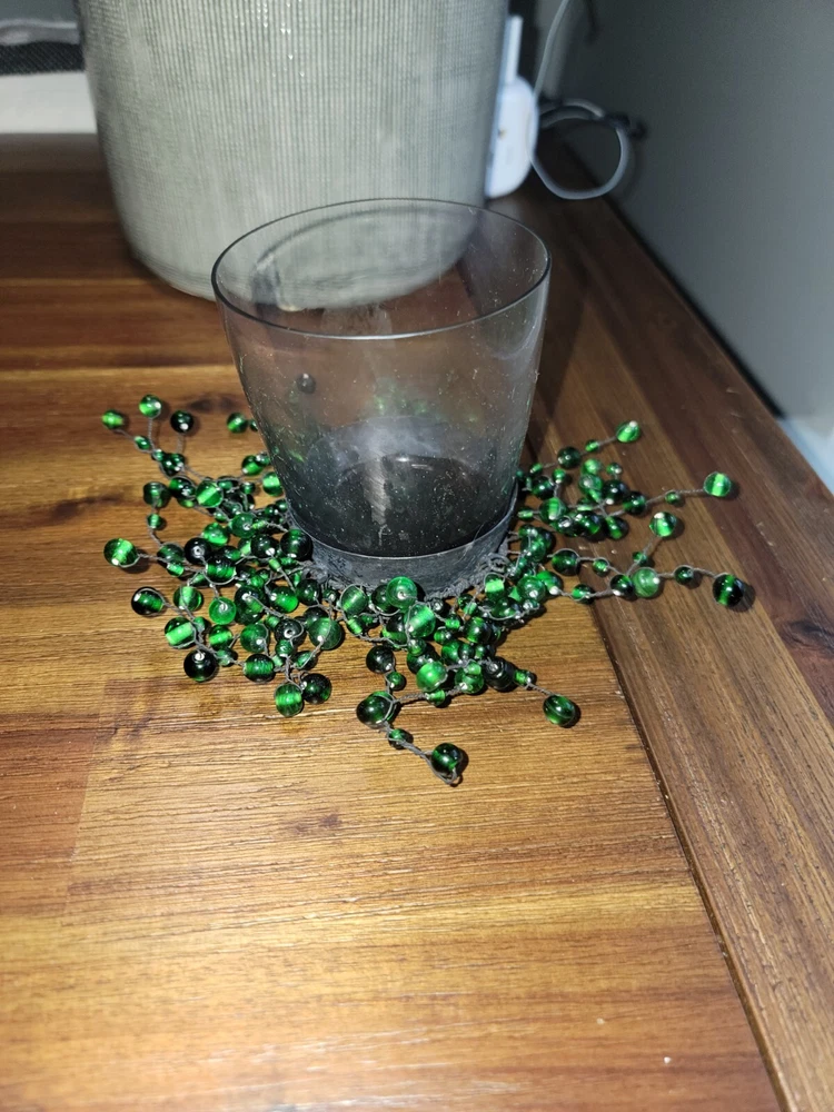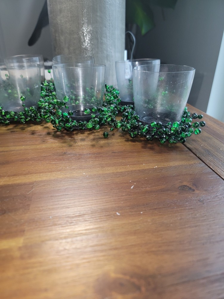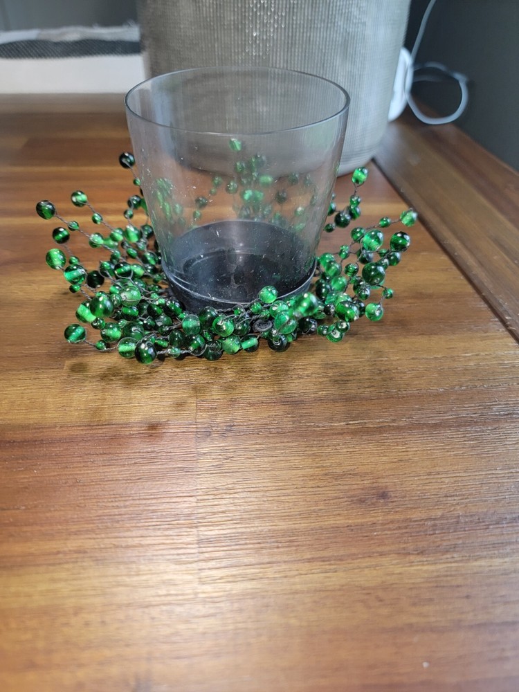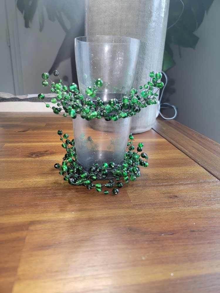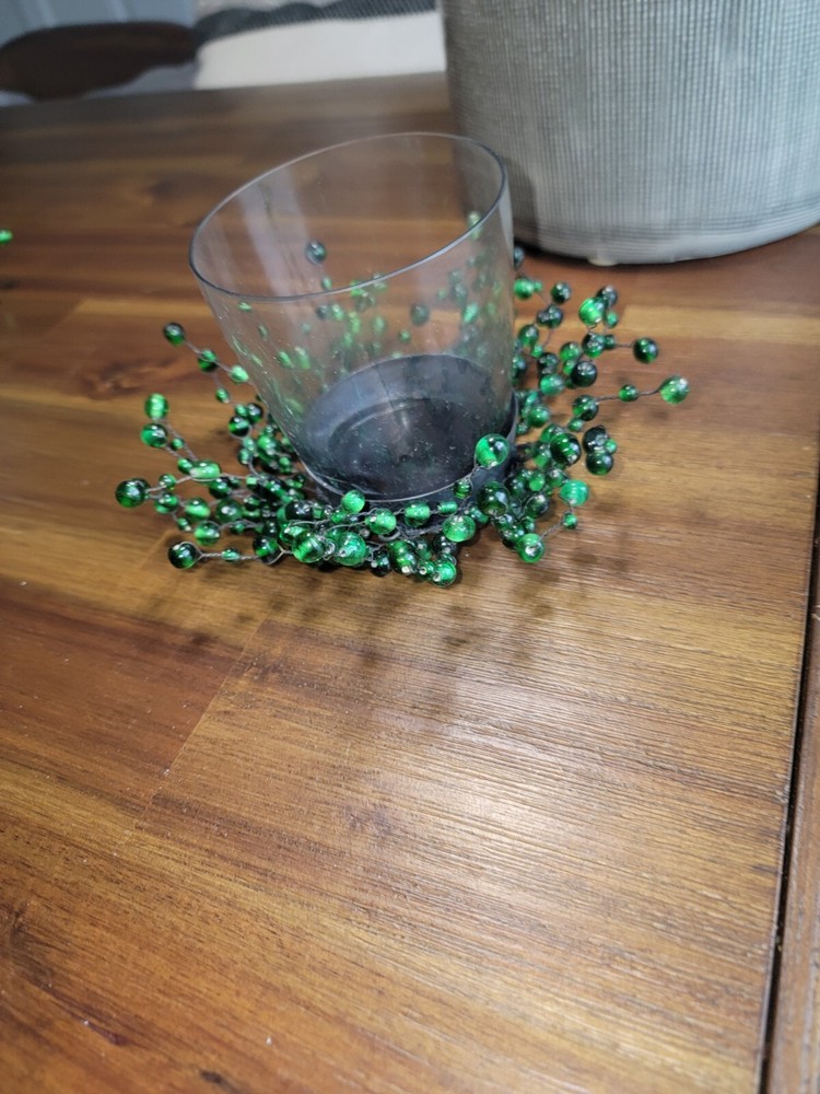 Set Of 8 POTTERY BARN GREEN PEPPER BERRY GLASS BEAD CANDLE VOTIVE . Condition is Used. Shipped with USPS Ground Advantage.