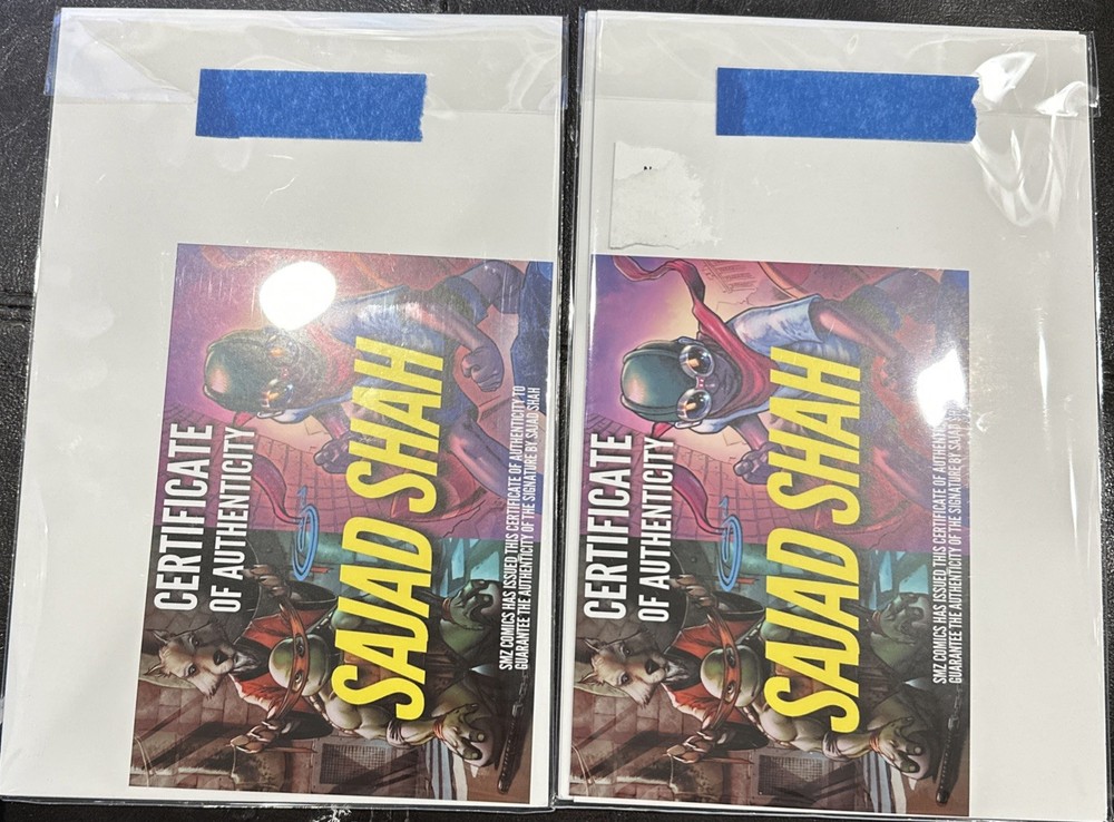 Amazing matching set of Deadpool & Wolverine original sketches by Sajad Shah! Deadpool sketches on a copy of the Deadpool #1 blank variant & the Wolverine sketch is in a Wolverine #1 blank variant. They each come with the Certificate of Authenticity (COA) from Sajad Shah. They look so good together! Incredible price for 2 pieces of original artwork by Shah! Books will come AS IS & these are the exact books you will receive. No returns or refunds. I have been the only owner & purchased directly from the retailer on WhatNot. I have really enjoyed having this set, but need to make room for my new pieces, so Iām letting them go at a great price! Thank you for your interest!