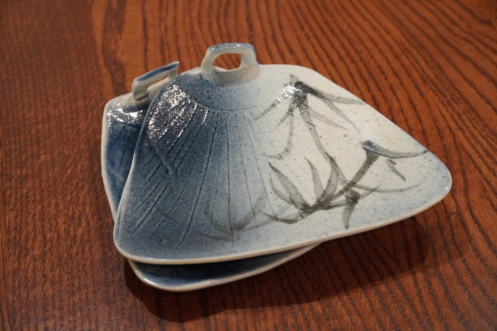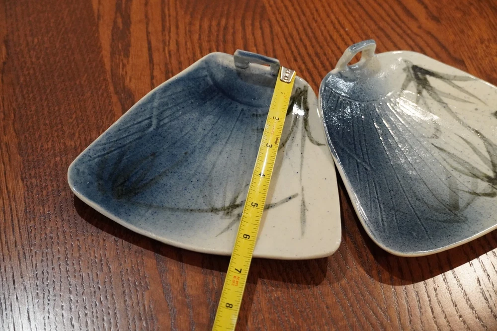 These sushi dishes are absolutely stunning! The handmade blue and white glaze gives them a unique, artsy look that elevates any table setting. The fan shape is elegant and just the right size for sushi, appetizers, or small desserts. Love that they're signed by Ann Elizabeth—such a special touch. High-quality craftsmanship and a beautiful addition to my collection!