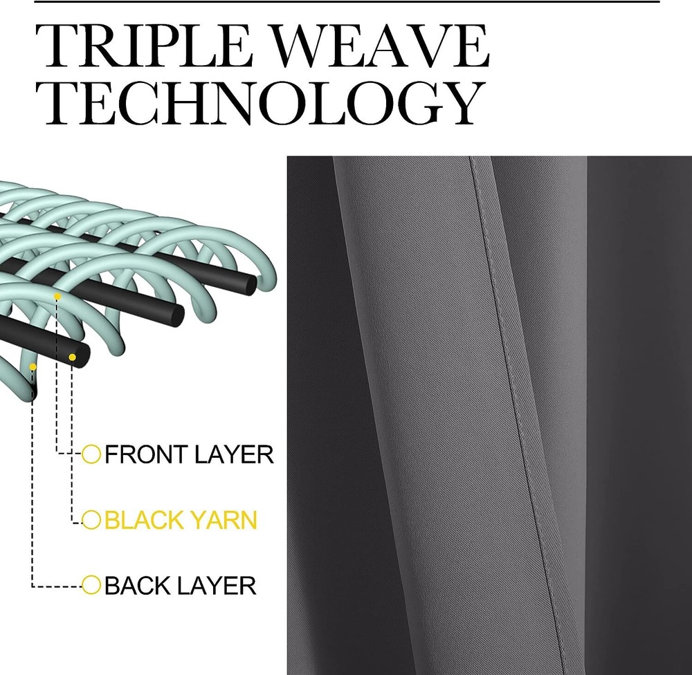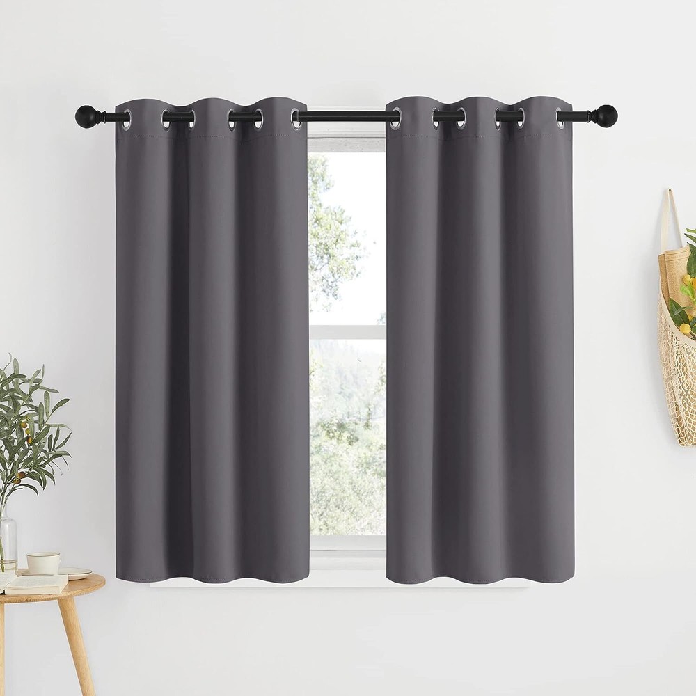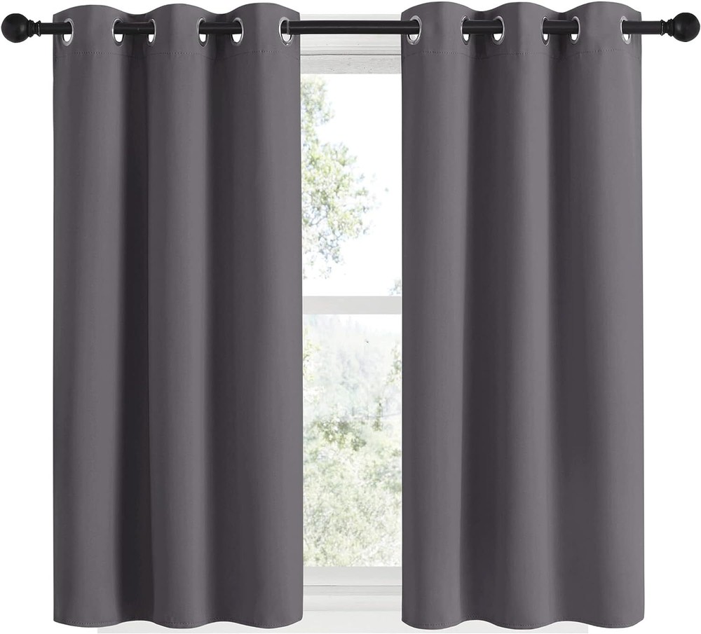 Polyester Imported ELEGANT DESIGN: 2 panels per package. Each Blackout Curtain measures 34" wide x 48" long. The design of silver grommet (1.6-inch inner diameter) creates casual elegance for your house, which makes the curtains easy to install and slide. MULTI-FUNCTION: Super heavy and soft Blackout Curtain Panels are very upmarket. Besides, 85%-99% light blocking, thermal insulated, soundproof, Fade-resistant, energy-efficient. Thread trimmed and wrinkle-free, both sides are the same color
