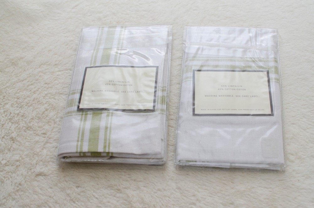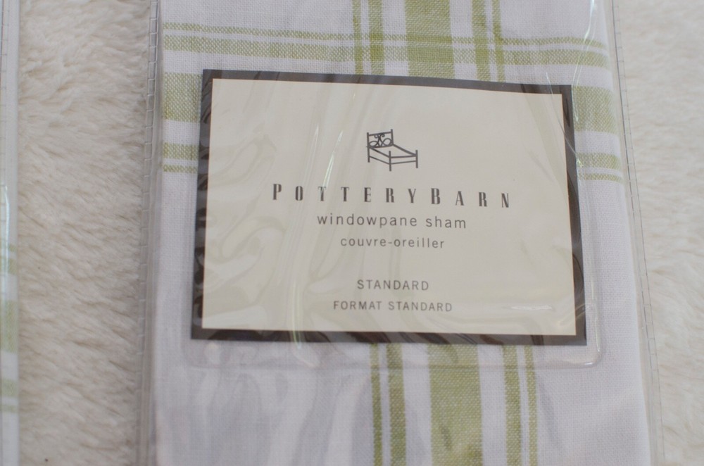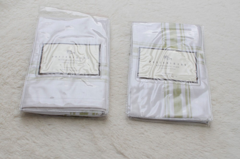 Add a touch of luxury to your bedroom with this set of 2 Pottery Barn pillow shams. The beautiful green windowpane pattern on a rectangular linen blend fabric will add a contemporary yet traditional farmhouse or country vibe to your room. These machine washable shams are perfect for both teens and adults. The closure type is a no closure, making it easy to switch out your pillows for a fresh look. These shams will fit standard-sized pillows and are made in China. Care instructions are simple: machine wash. Update your bedroom decor with these stylish shams.