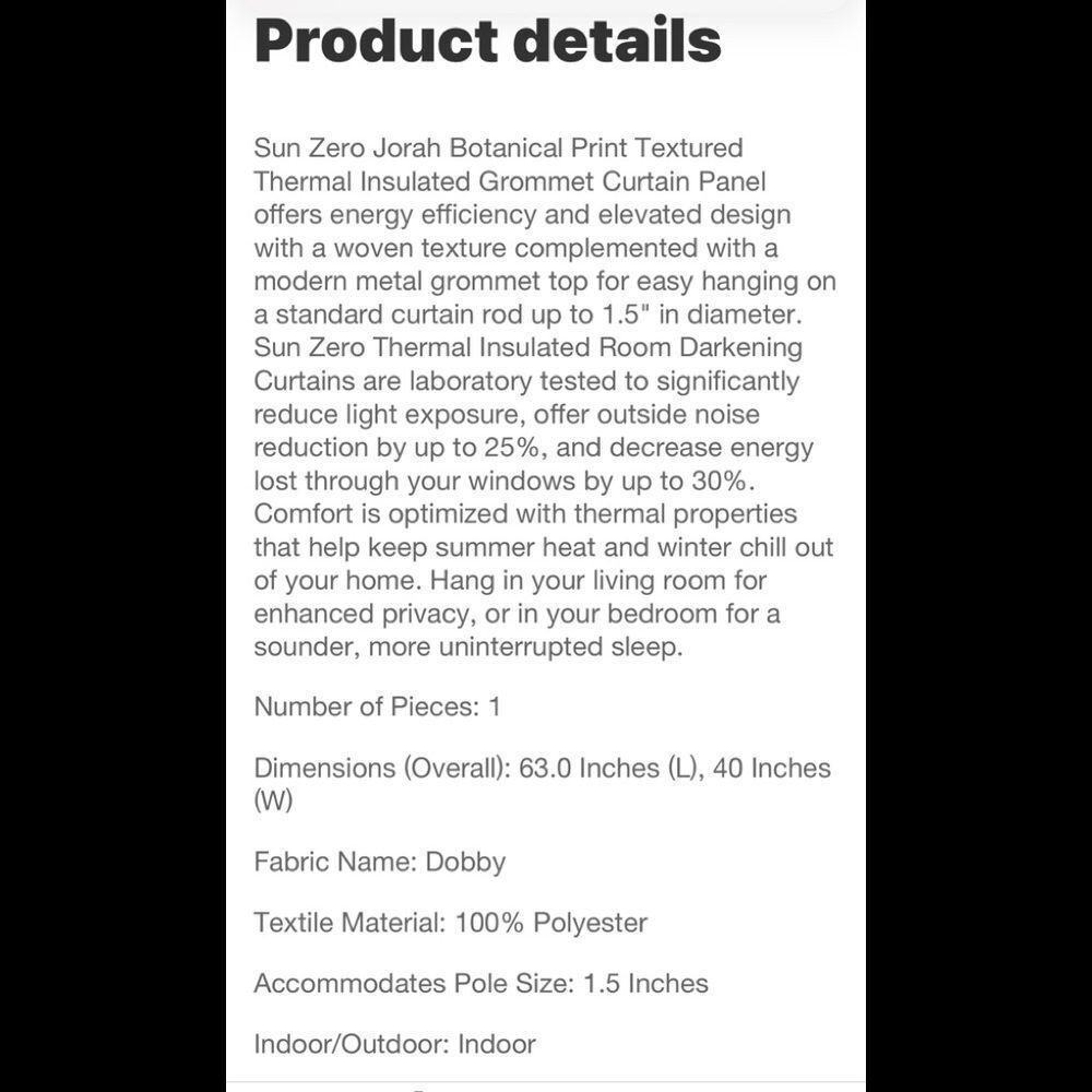 Sun Zero Jorah Botanical Print Textured Thermal Insulated offers energy efficiency and elevated design with a woven texture complemented with a modern metal grommet top for easy hanging. Please see pic for more information
