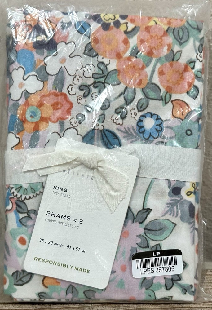Pottery Barn Amelia Set of 2 King Size Pillow Shams New with Tag ~ Woven of 100% cotton percale. ~ Sham as an envelope closure ~ Measures approximately 36" x 20" ~ Comes from a smoke-free home