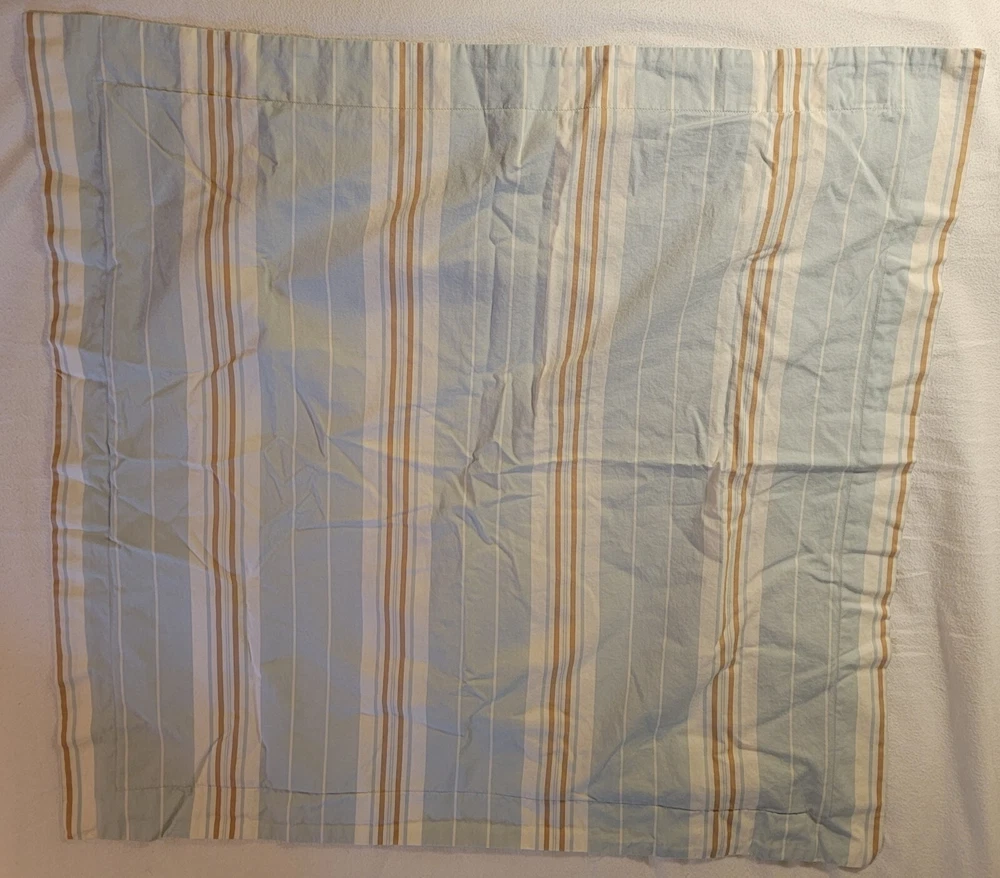 Up for sale is a set of 2 pre-owned Pottery Barn striped euro shams. They feature blue, white and tan stripes. 100% cotton and machine washable. Shams are in excellent, pre-owned condition. No rips, s...